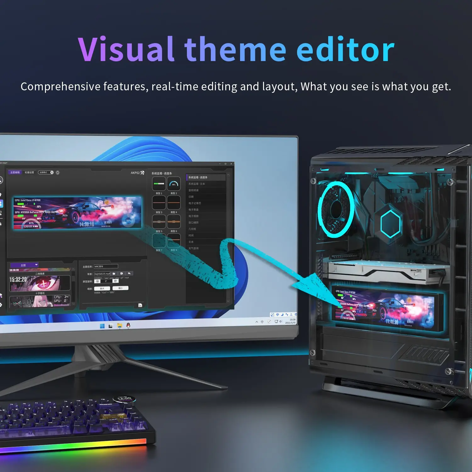 AKP02 DIY computer secondary screen 9.2-inch USB interface AJAZZ computer display screen does not occupy graphics card resources, visualizes themes, edits dynamic backgrounds, computer office assistant desktop artifact, suitable for multiple scenarios