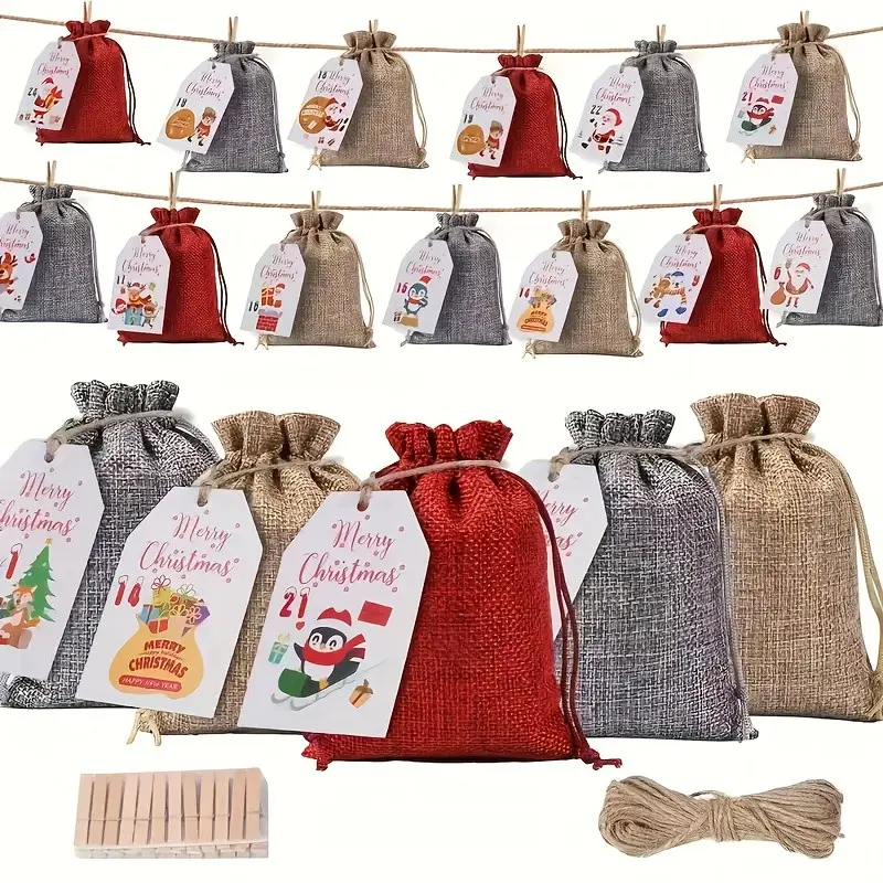 12 Pcs Hemp Drawstring Gift Bags, Reusable Holiday Craft Supplies, Wedding Favors Party Decor, Minimalist Style