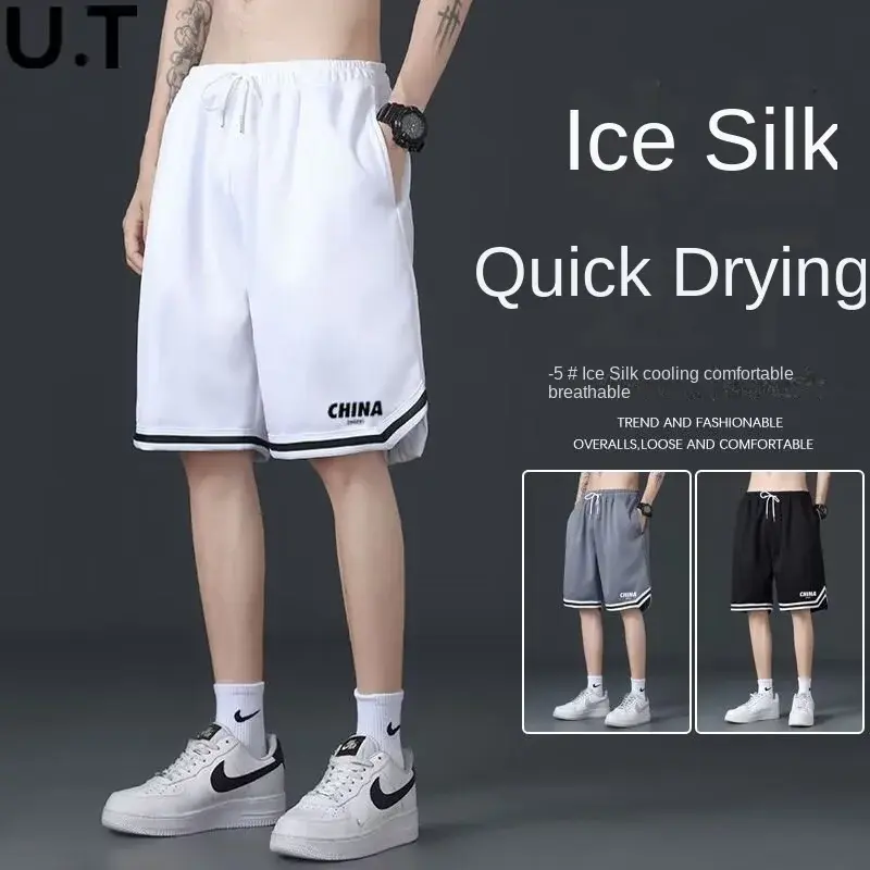 Kyn Apparel Ice silk shorts for men in summer thin and quick drying sports shorts American mesh breathable casual five point basketball pant