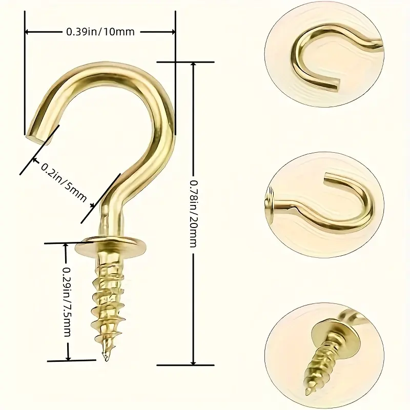 [Selling Point Description]: It adopts sharp Self-tapping Screw thread design and can be easily screwed into wooden surface; 40 large-capacity packages meet the storage needs of the whole House; The golden coating is beautiful and has oxidation resistance.