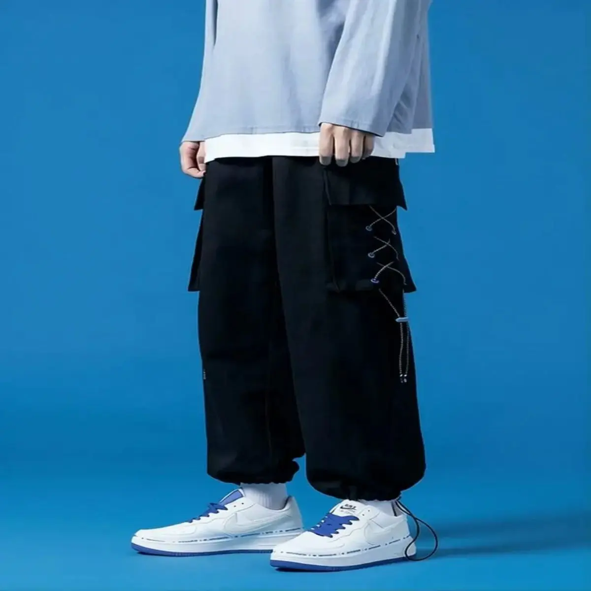 These spring and summer casual sport cargo sweatpants feature a trendy Harajuku-inspired design in a fresh apricot white shade, offering a stylish straight wide-leg silhouette for a modern street look. Made with lightweight, breathable fabric, they keep you cool and comfortable during warm weather, perfect for daily casual wear, sports, jogging, street fashion, travel, commuting, and weekend outings. The relaxed baggy fit ensures unrestricted movement, while practical cargo details add functionality and style. Ideal for the spring and summer seasons, these versatile joggers pair effortlessly with Tshirts, tank tops, hoodies, casual shirts, and sneakers to create a clean, youthful, and fashionable outfit.Material: High-quality