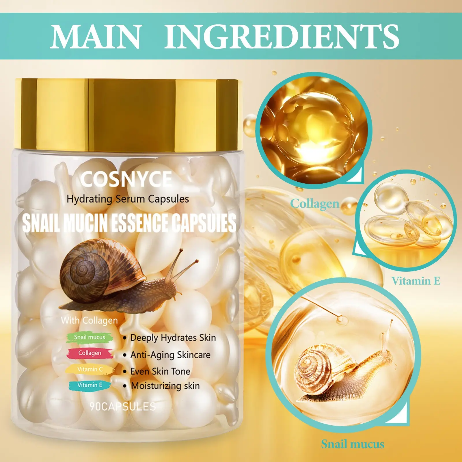 Cosnyce Snail Mucus Essence Capsules, Hyaluronic Acid Collagen Retinol, Moisturizing Skincare, Firming and Hydrating