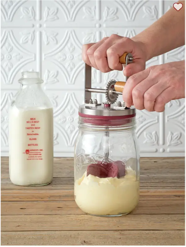 While you may not live on a farm, you can still enjoy the flavor of fresh-churned butter with this handy butter churner. All it takes is whipping cream, a little elbow grease, and 10 minutes of your time to turn the cream into delicious homemade butter. To make your own compound butters, just mix in your favorite herbs and seasonings. Churner includes step-by-step instructions and 4 easy-to-follow recipes.