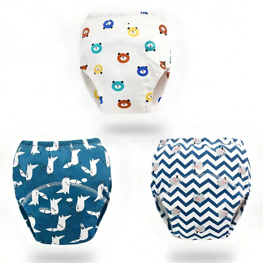 3pcs Reusable Kids Training Pants, Cartoon Print Potty Learning Underwear, Leak-Proof Diapers for Boys & Girls, Newborn Size Up to 5kg