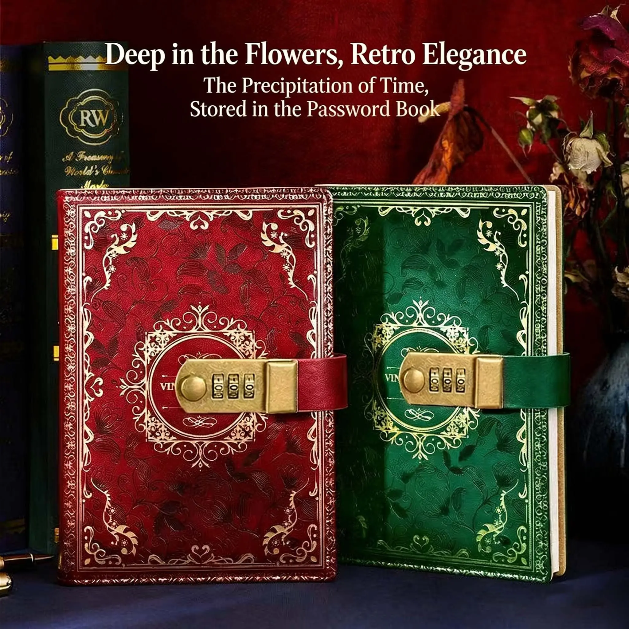 Vintage European Embossed Gold Foil Password Notebook, Luxurious Texture, Practical Functionality, Diary Journal Private Notebook, 100 Sheets