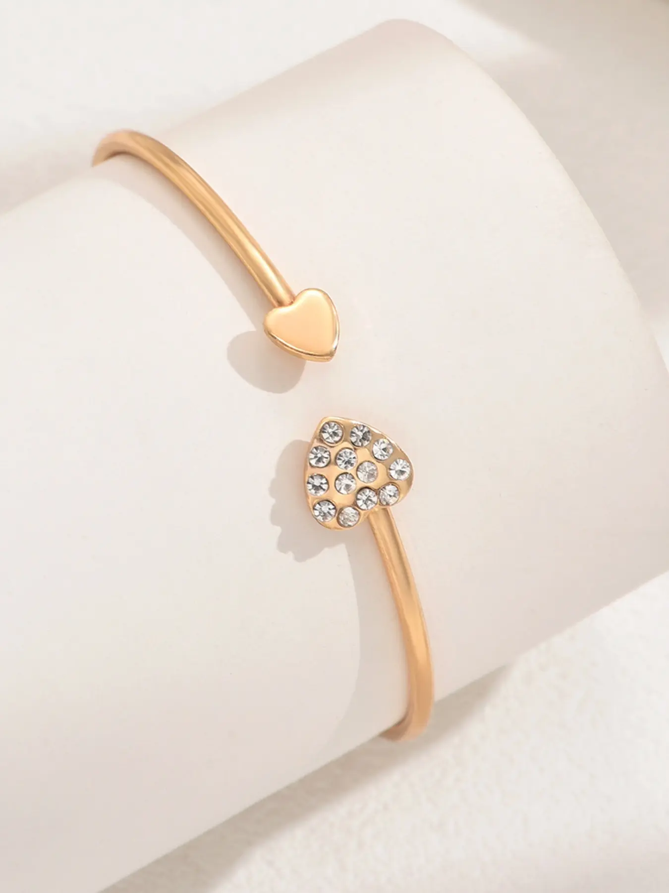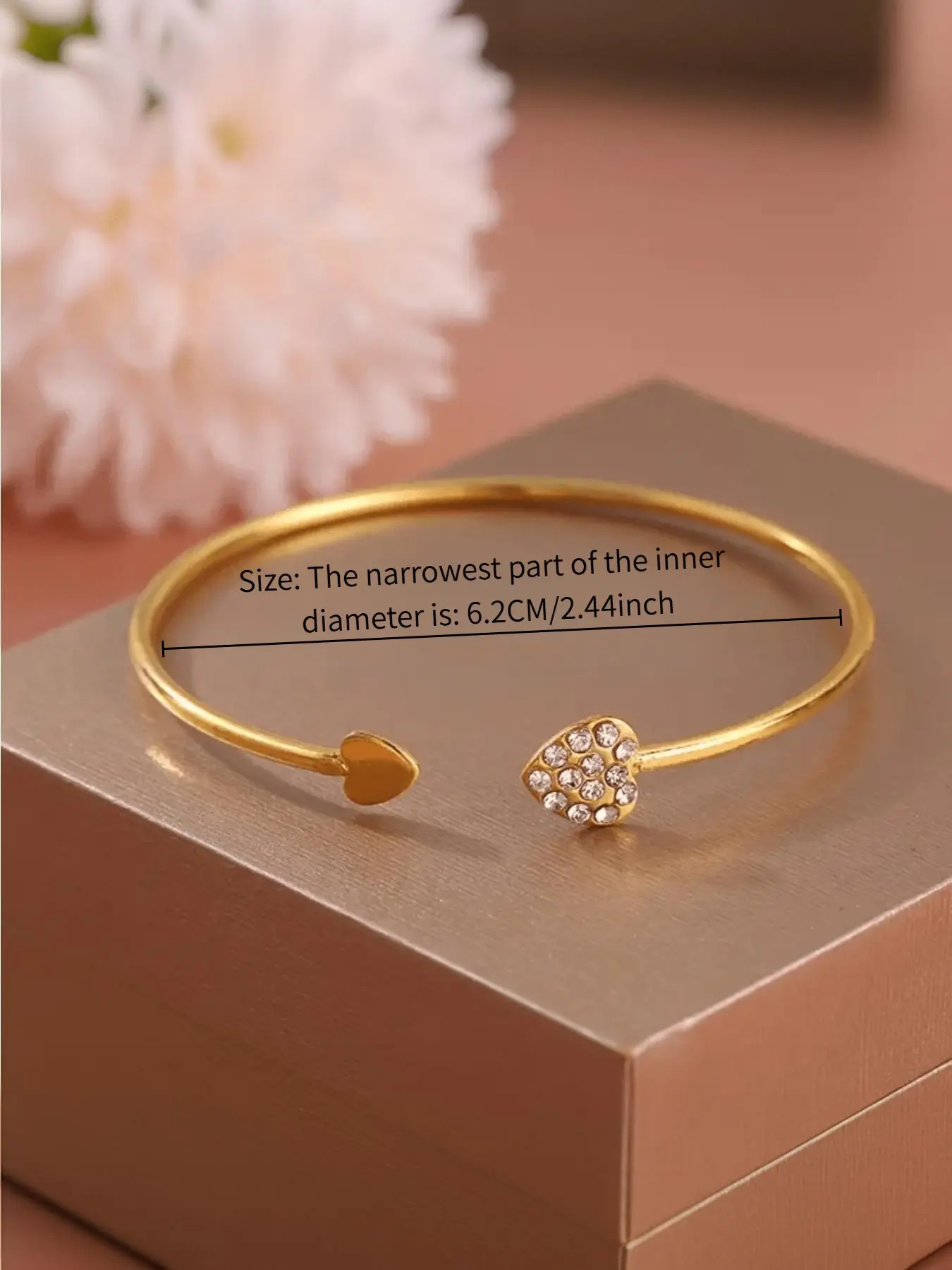 Adjustable Gold-tone Cuff Bracelet, Double Heart Opening Bracelet, Inlaid with Sparkling Zircon, Ideal for Daily Wear and Gifting, Valentine'S Day Accessory, Elegant Accessory, Zirconia Stone Accent