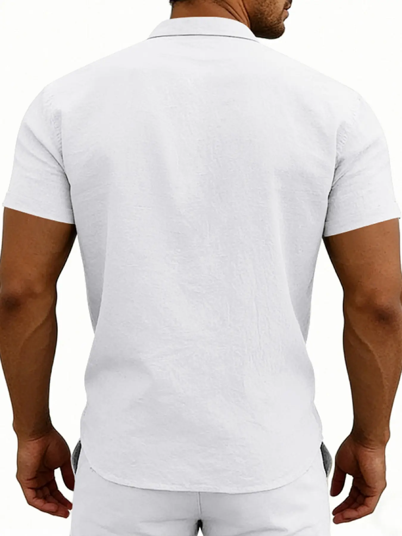 Men's Hawaiian Style Linen Short Sleeve Shirt, Casual Stand Collar Summer Top, Retro Design for Men, Comfortable and Stylish