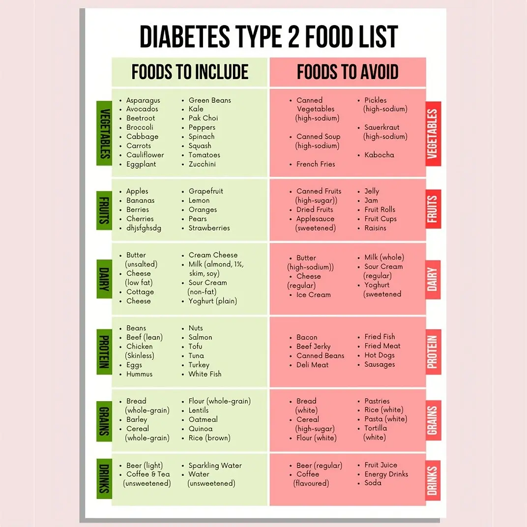 Diabetes Food List Poster, Diabetes Diet Chart, Shopping List, Nutritional Guide, Party Activity Supplies, Dietary Plan