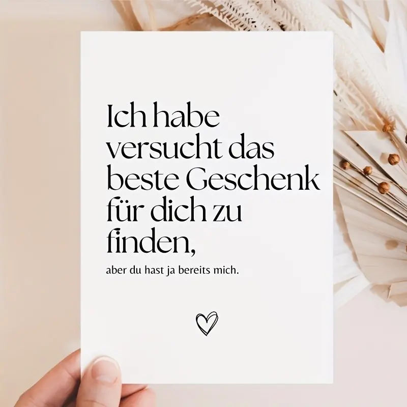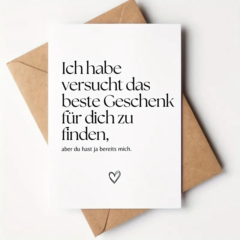 【Humorous Messages】: Features funny German love quotes like "I'm the best gift" for a playful touch.