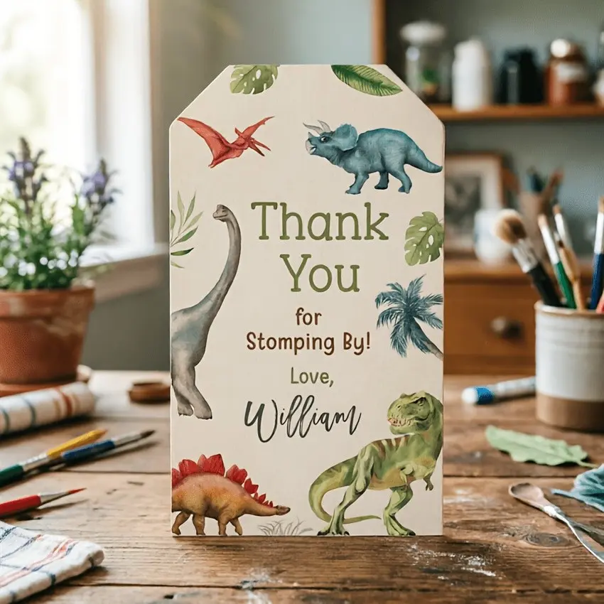 20 Dinosaur Birthday Party Invitation Tags, Dinosaur Birthday Invitations, Dinosaur Thank You Labels, Fun Kids Party Supplies