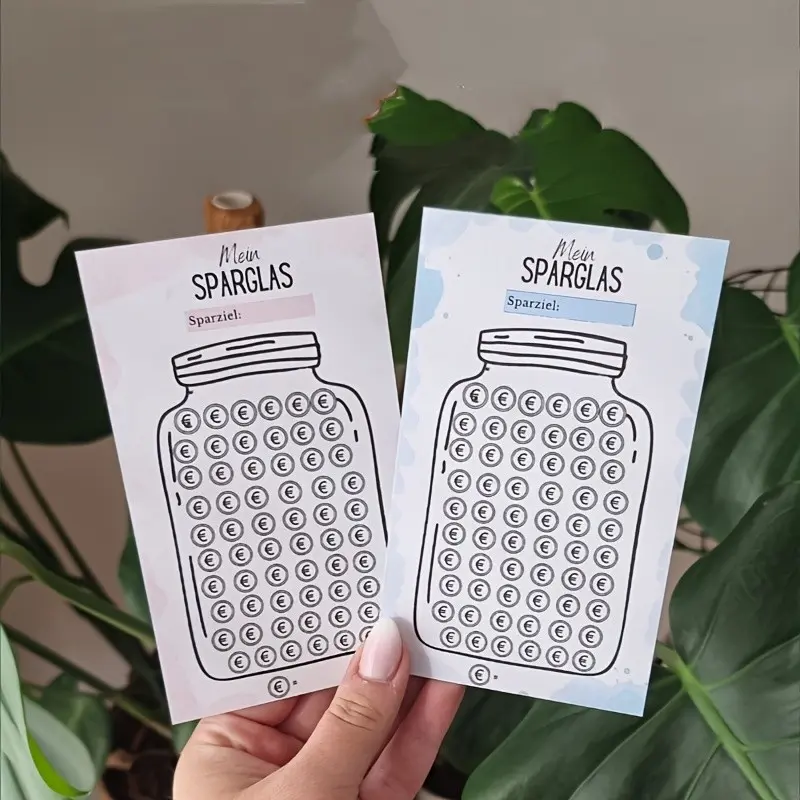 【Visual Tracking】: "Mein Sparglas" visual saving cards help you track savings progress easily and effectively.