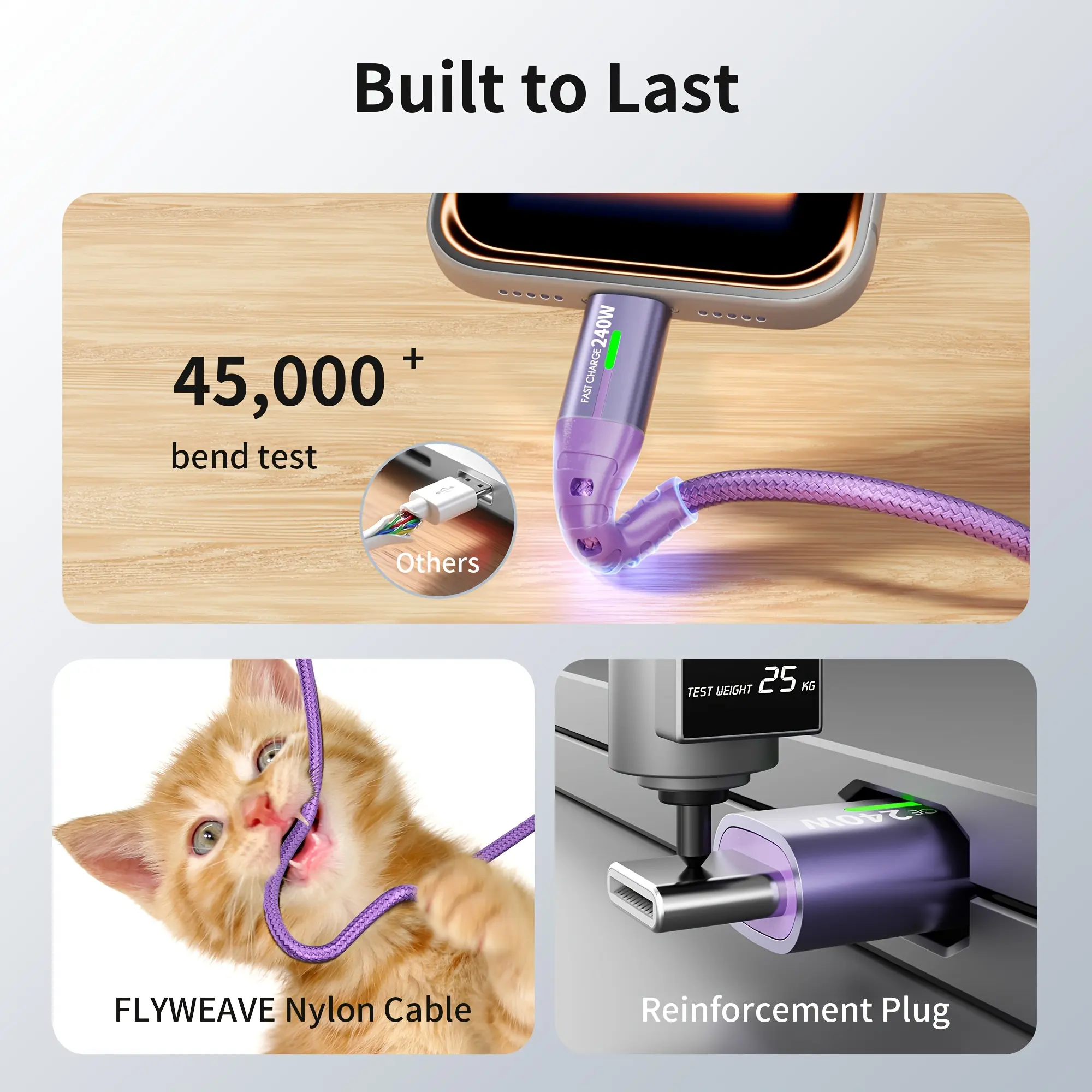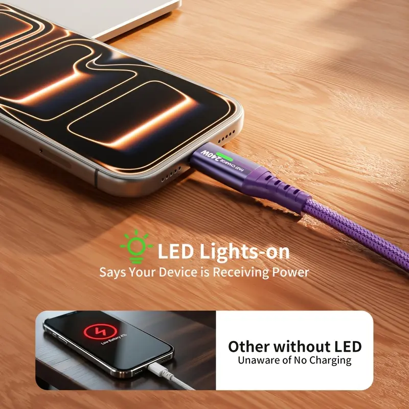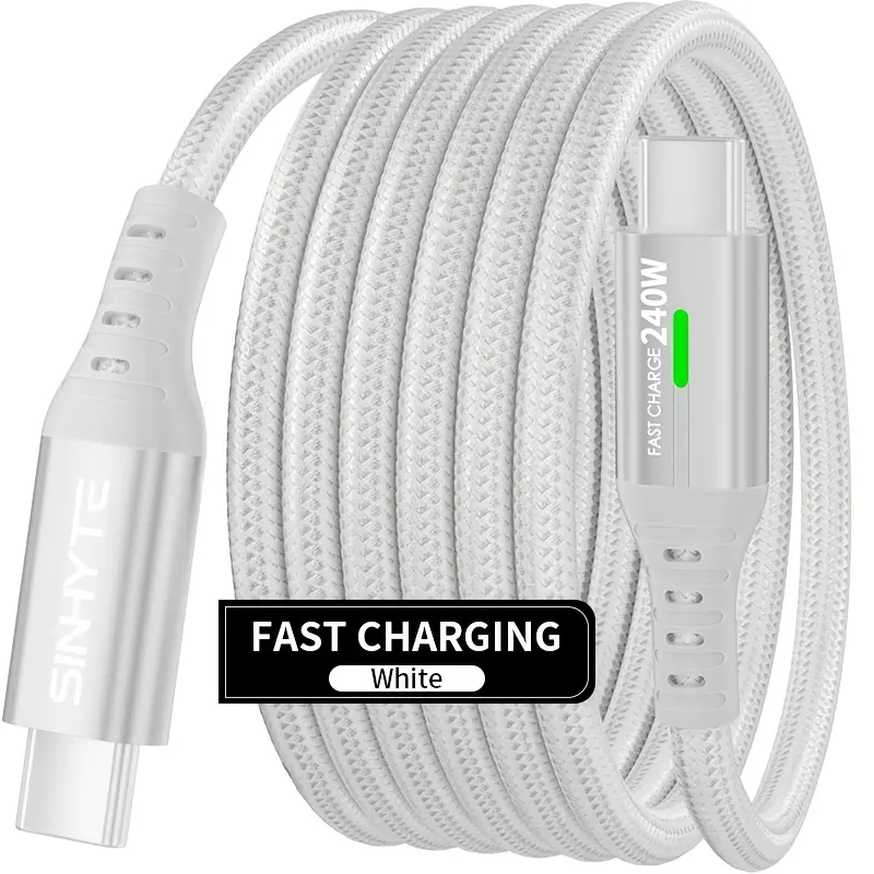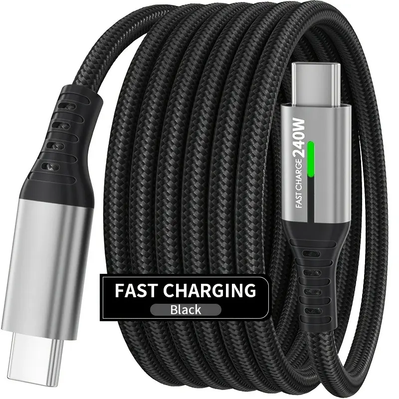240W Super Fast Charging USB-C to C Durable Braided Cable | E-Marker | Charging Indicator | for iPhone, for Samsung & All Type-C Smartphones, Tablets and Laptops -