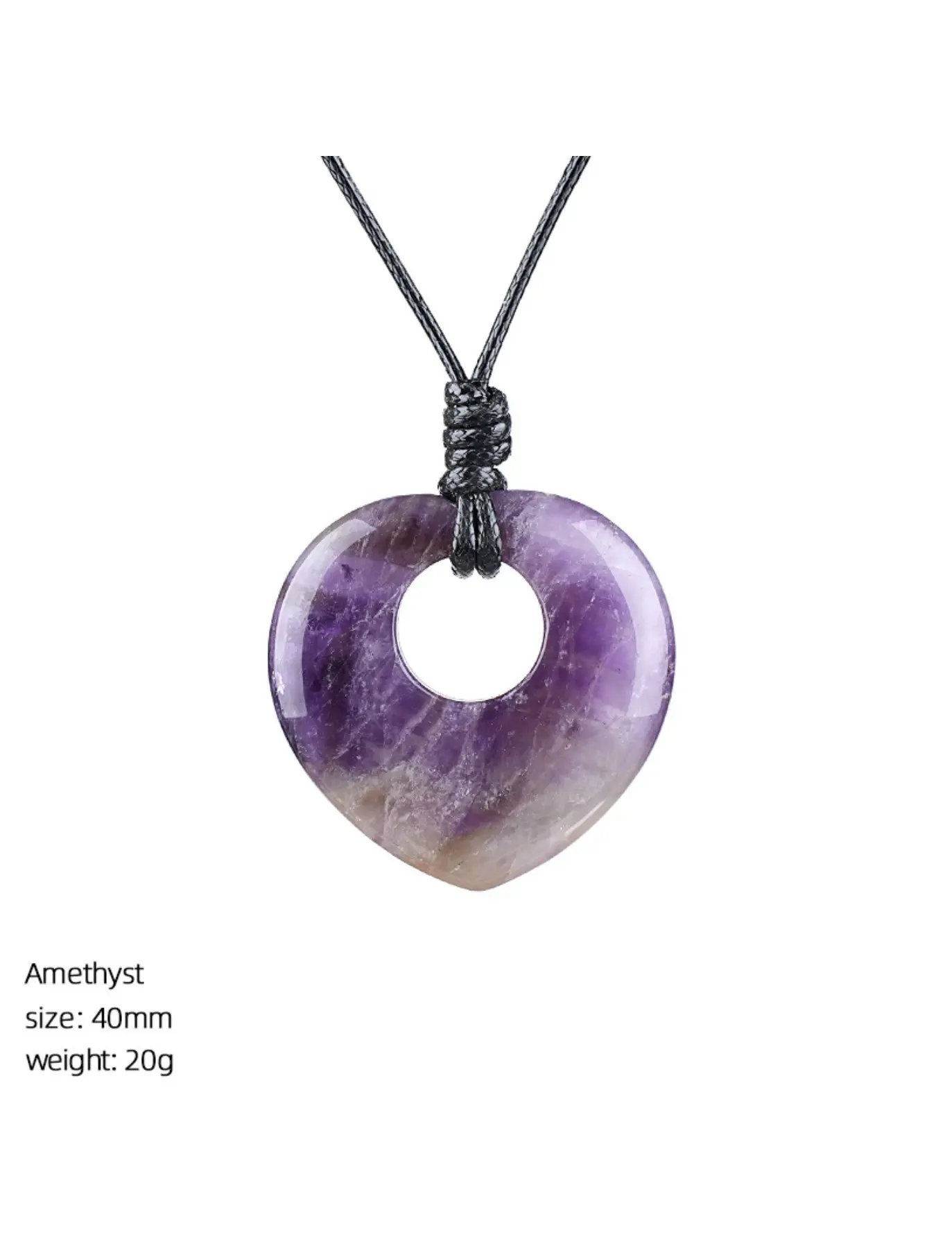 Random 7pcs Natural Stone Heart Necklace Set, Vintage Handmade Adjustable, Natural Crystal Original Stone Heart Pendant