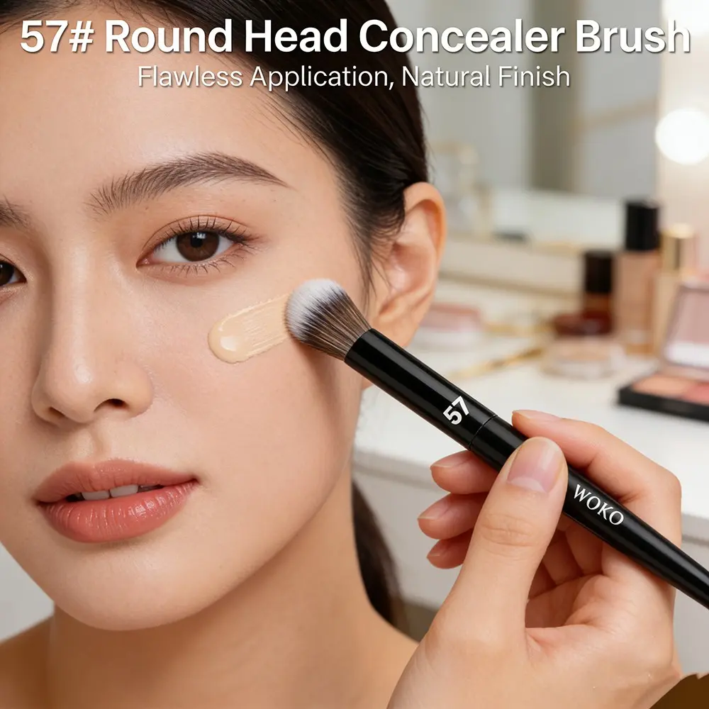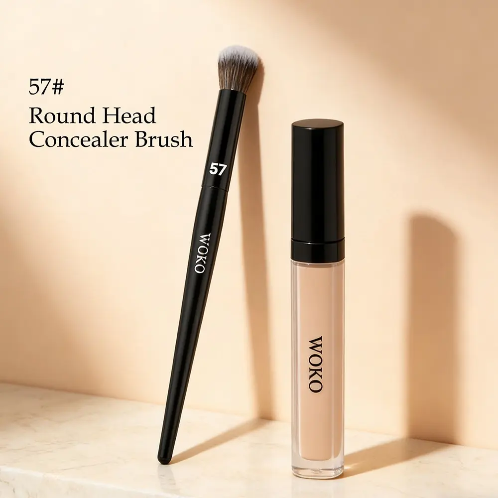 57 Round Head Concealer Makeup Brush, Face Concealer Liquid Blending Brush, Circular Buffing Motions, Blend and Cover Imperfections