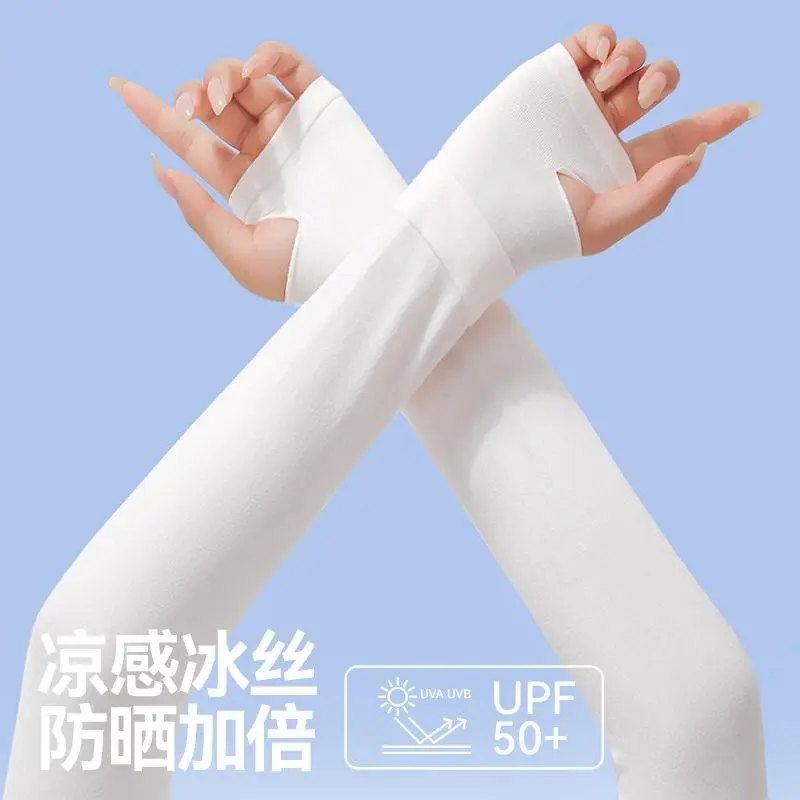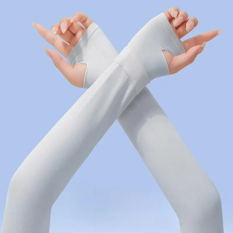 Sun Protection Arm Sleeves for Women Breathable Cooling Ice Silk for Driving Cycling & Outdoor Sports Double Ribbed Cuff Hidden Thumb Hole Quick Dry Fabric UPF50+ UV Protection