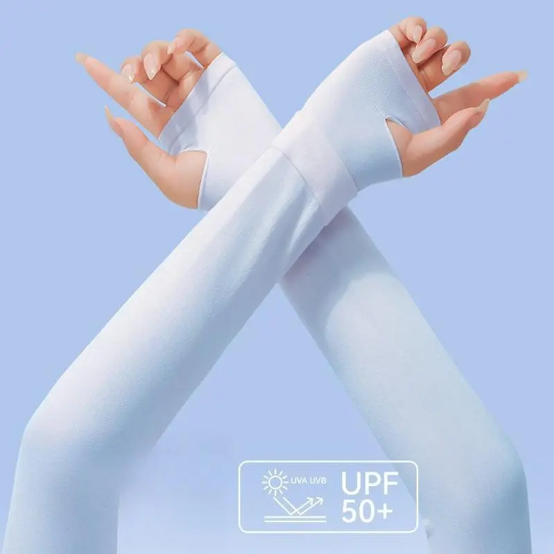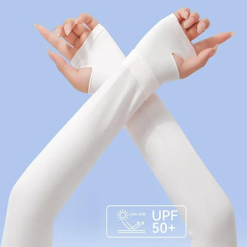 Stay cool and protected outdoors with our premium women’s sun protection arm sleeves! Crafted with cooling ice silk fabric, these UPF50+ sleeves block 99% of harmful UV rays, deliver instant cooling, and wick away sweat to keep you dry and comfortable during driving, cycling, hiking, running, and all outdoor activities. Featuring a double ribbed cuff design and hidden thumb hole, they offer a secure, stretchy fit that stays in place without slipping, while the ultra-breathable, quick-dry fabric ensures all-day comfort. Soft, skin-friendly, and lightweight, these UV protection sleeves are a must-have summer accessory for women who love outdoor activities.