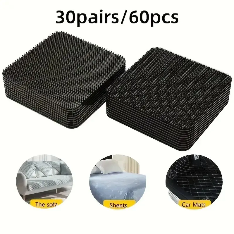 60 Pcs/30 Pairs Strong Adhesive Magic Tape for Sofa Cushion Fixing, Dual-Sided Bed Rug Foot Pad, Non-Slip Invisible Stick