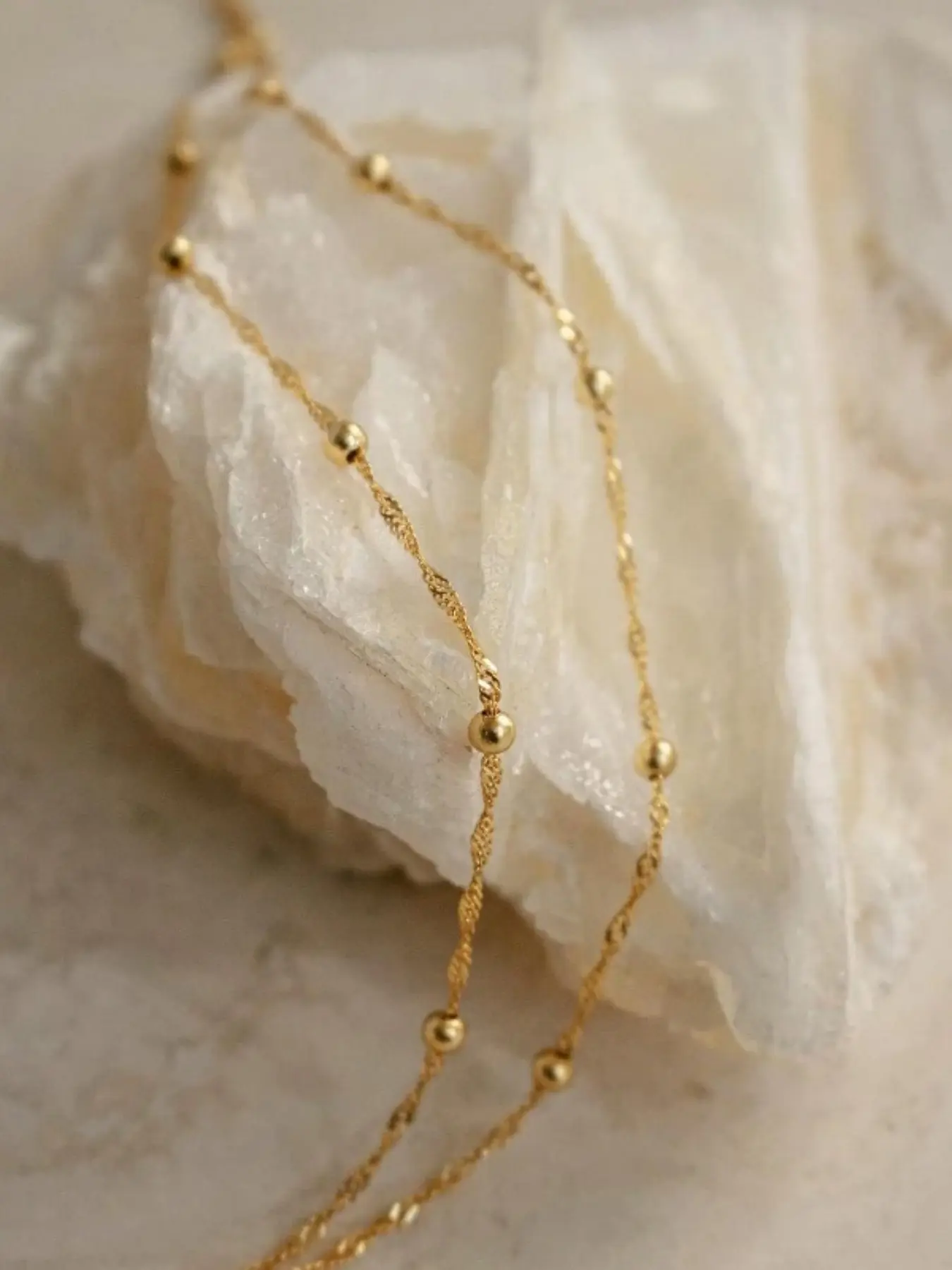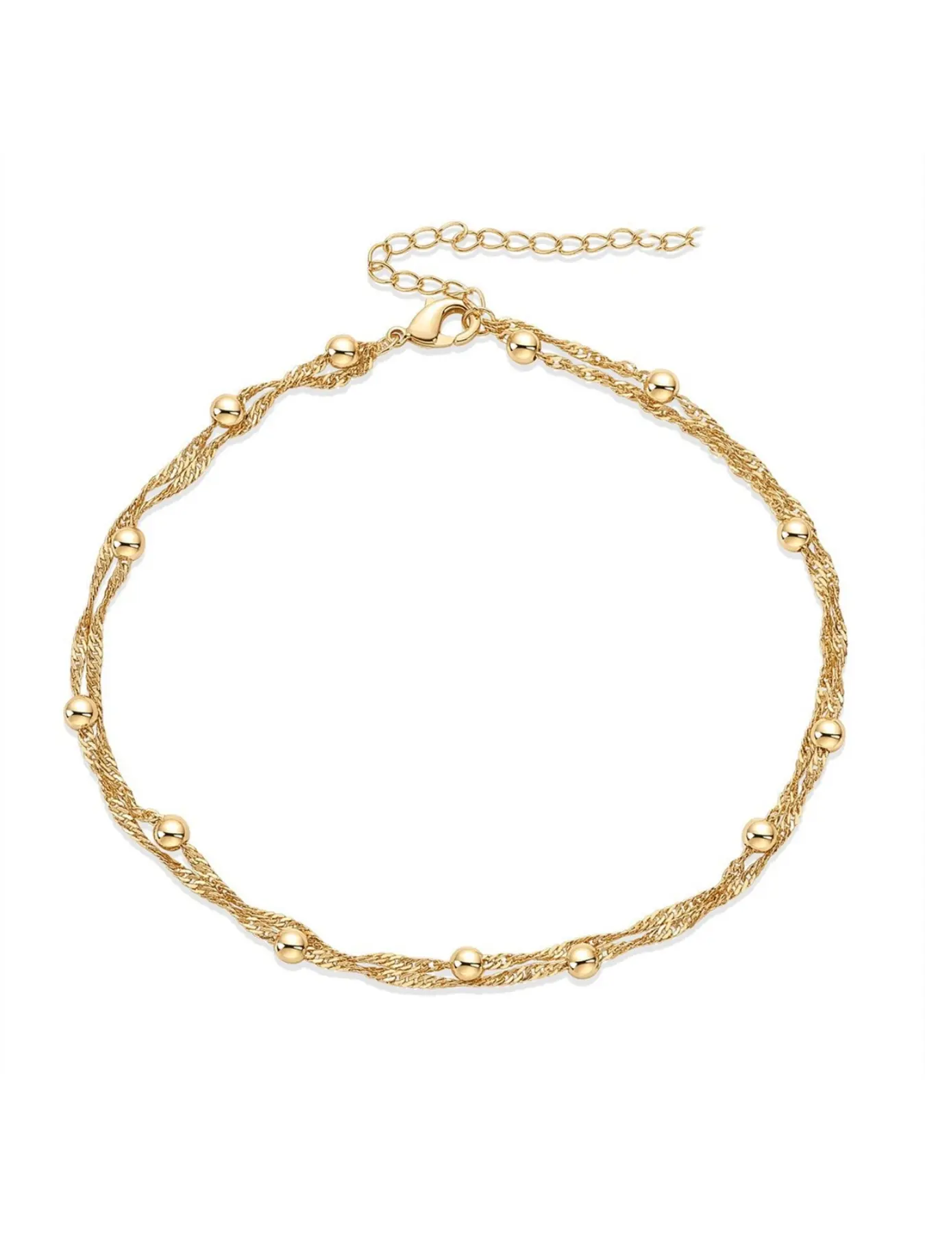 Bohemian-Style Women'S Ankle Bracelet with a Double-Layer Chain And Beads, Waterproof Alloy Elegant Anklet Bracelet for Women - Matte Finish, Daily & Gift Occasion, All Seasons Compatible, Beach-Friendly Jewelry