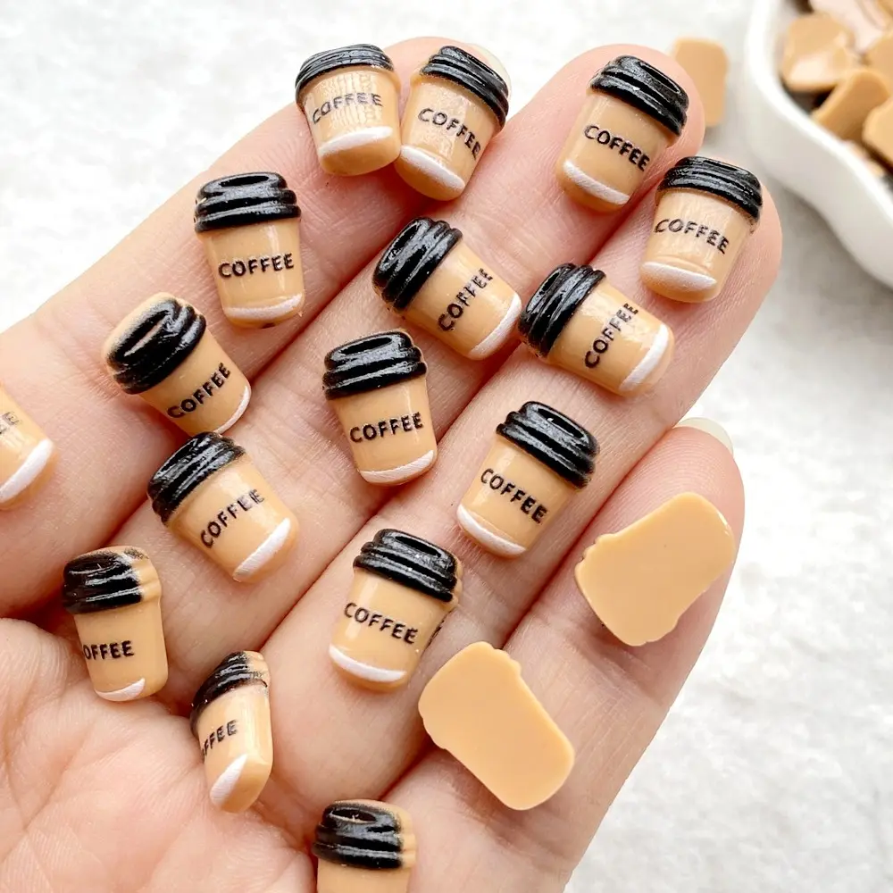 40pcs colorful cartoon mini coffee cup resin rhinestone nail accessories, charming and sweet multifunctional rhinestone jewelry - suitable for nail art, scrapbook DIY、 Wedding decorations and nail art accessories