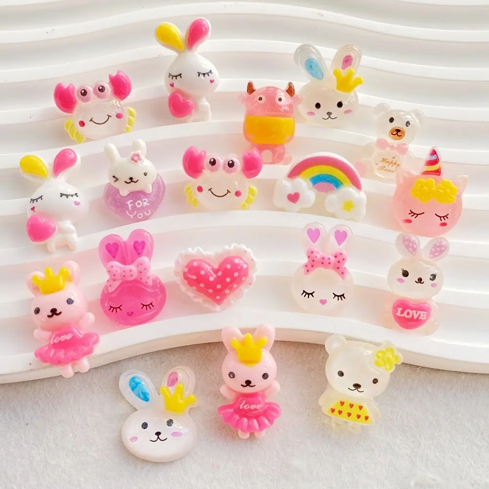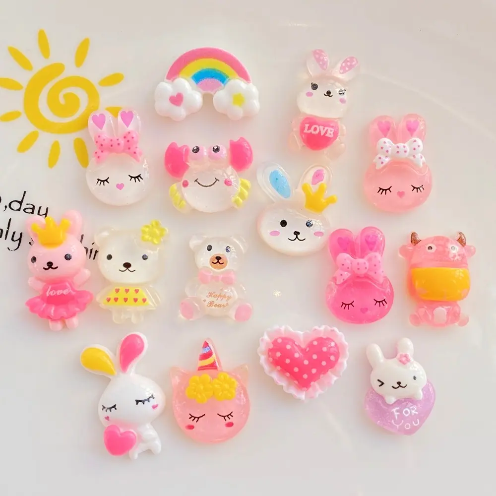 46pcs vibrant cartoon rabbits, teddy bears, rainbow resin statues - suitable for scrapbook making, DIY jewelry accessories, wedding decoration, and nail art matching