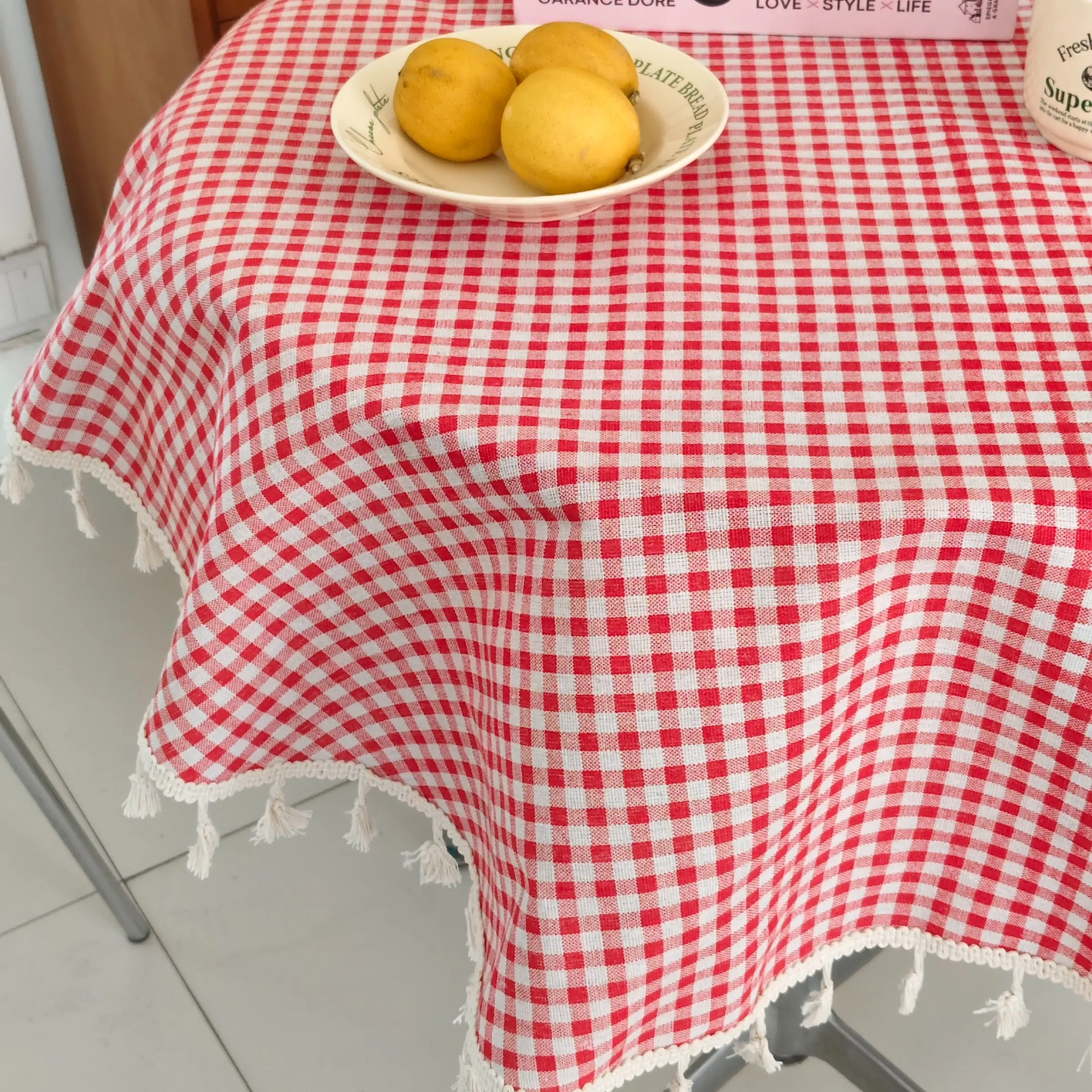[Pattern]: Classic red and white plaid pattern, exquisite tassel design, add a touch of elegance to your dining table arrangement.