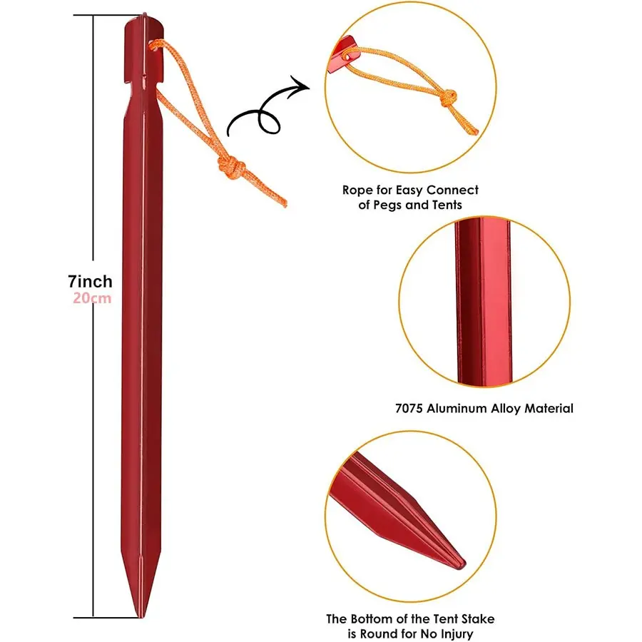 Lightweight Tent Pegs Campsite Ground Nails, 18cm Aluminum Alloy Shelter Tent Stakes, Durable & Portable Camping Accessory