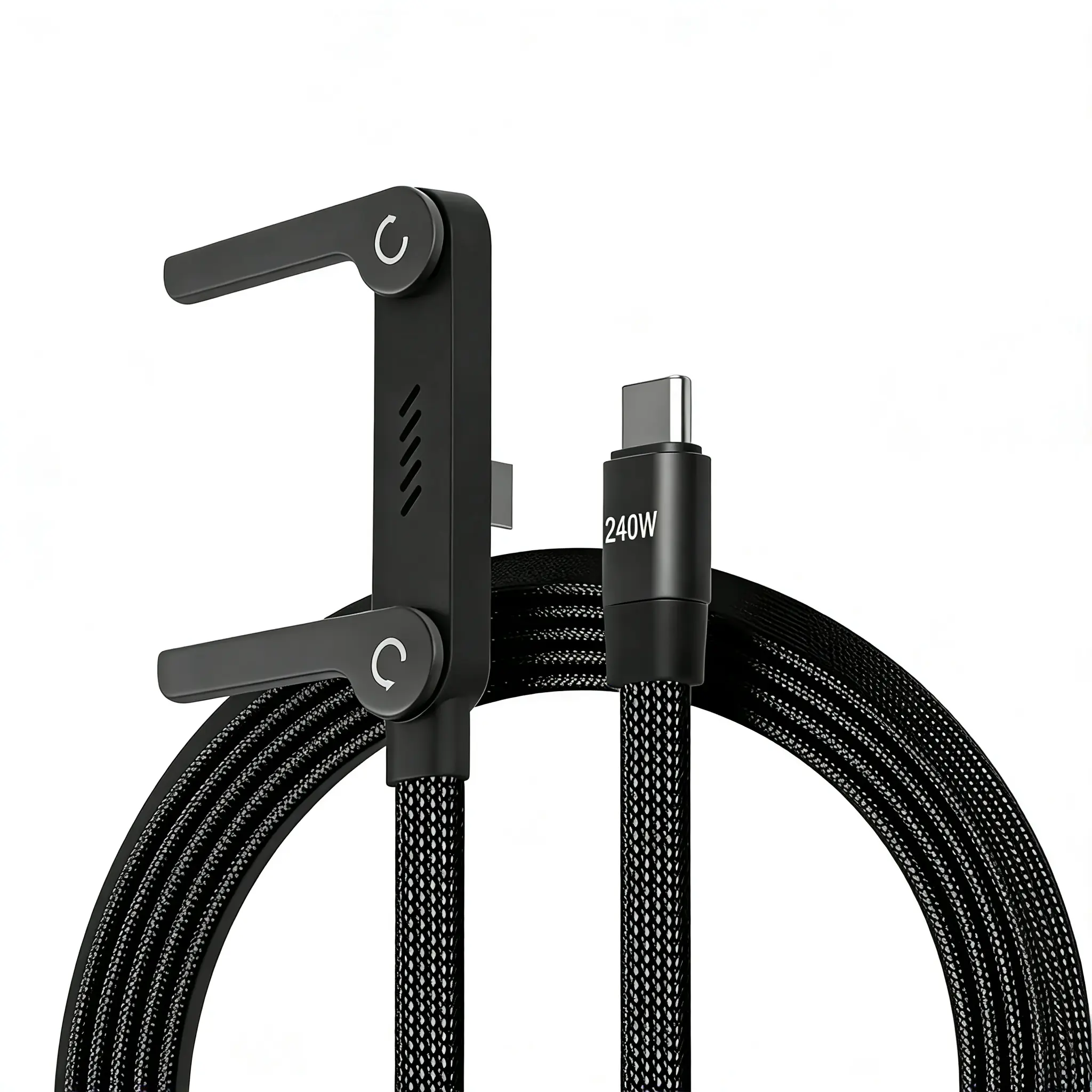 240W Foldable Phone Stand Fast Charging Cable, USB-C to Type-C Data Cable, Portable and Convenient Mobile Accessory