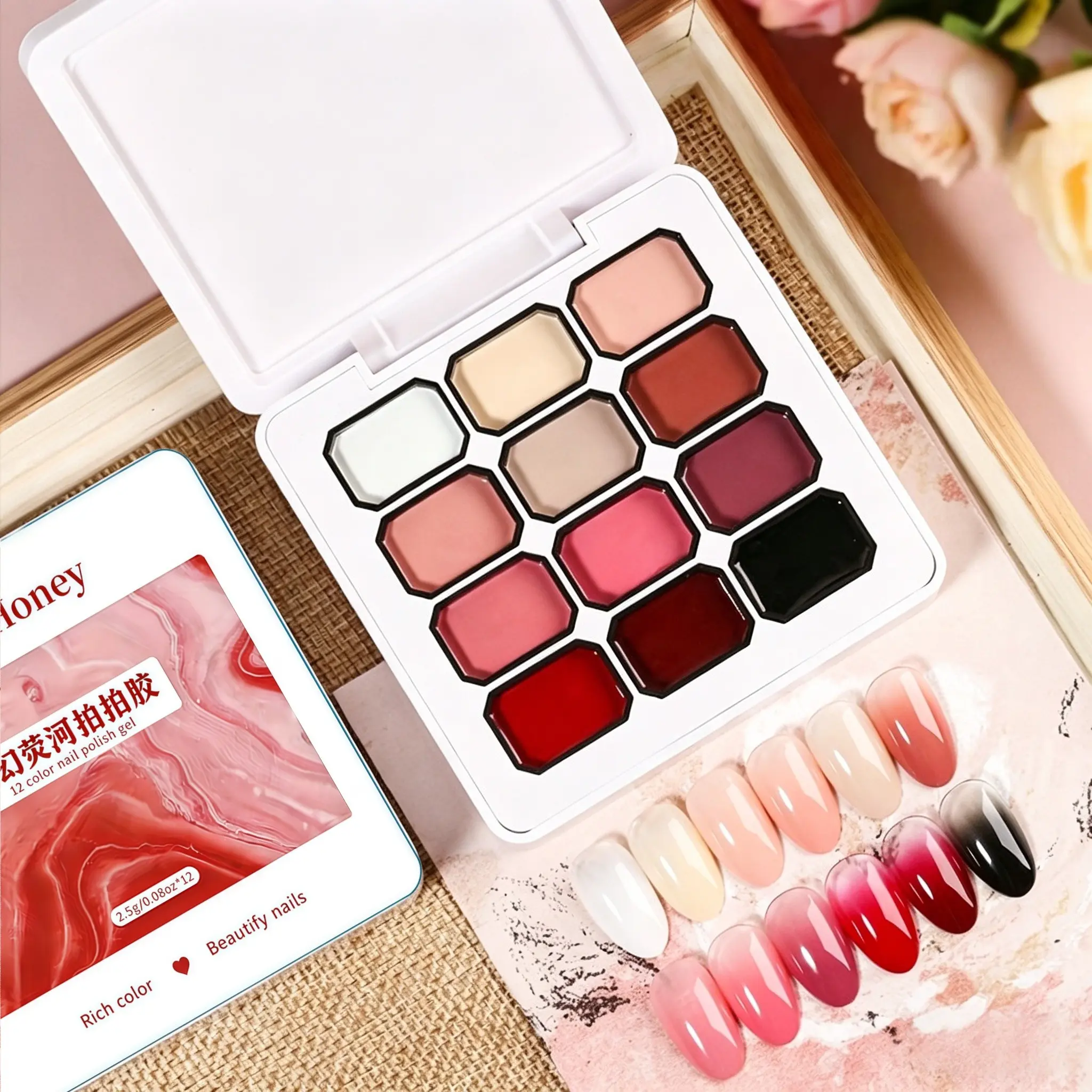 12-Color Y2K Nail Gel Set, Rainbow Colors, Dopamine Macaron, Red Series, High Saturation Shimmer, LED Nails, DIY Nail Design