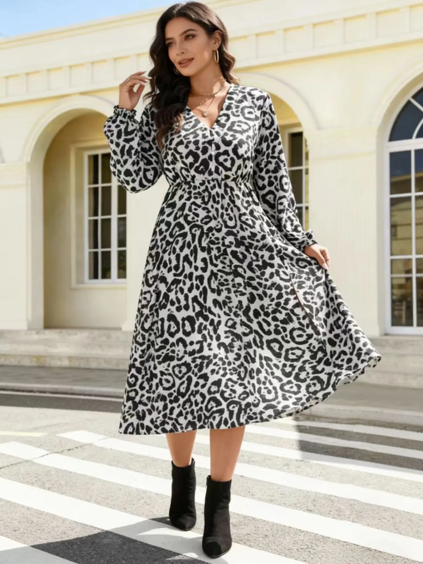 Elegant Leopard Print V-Neck Dress for Plus Size Women, Sexy and Stylish Maxi Dress, Perfect for Special Occasions