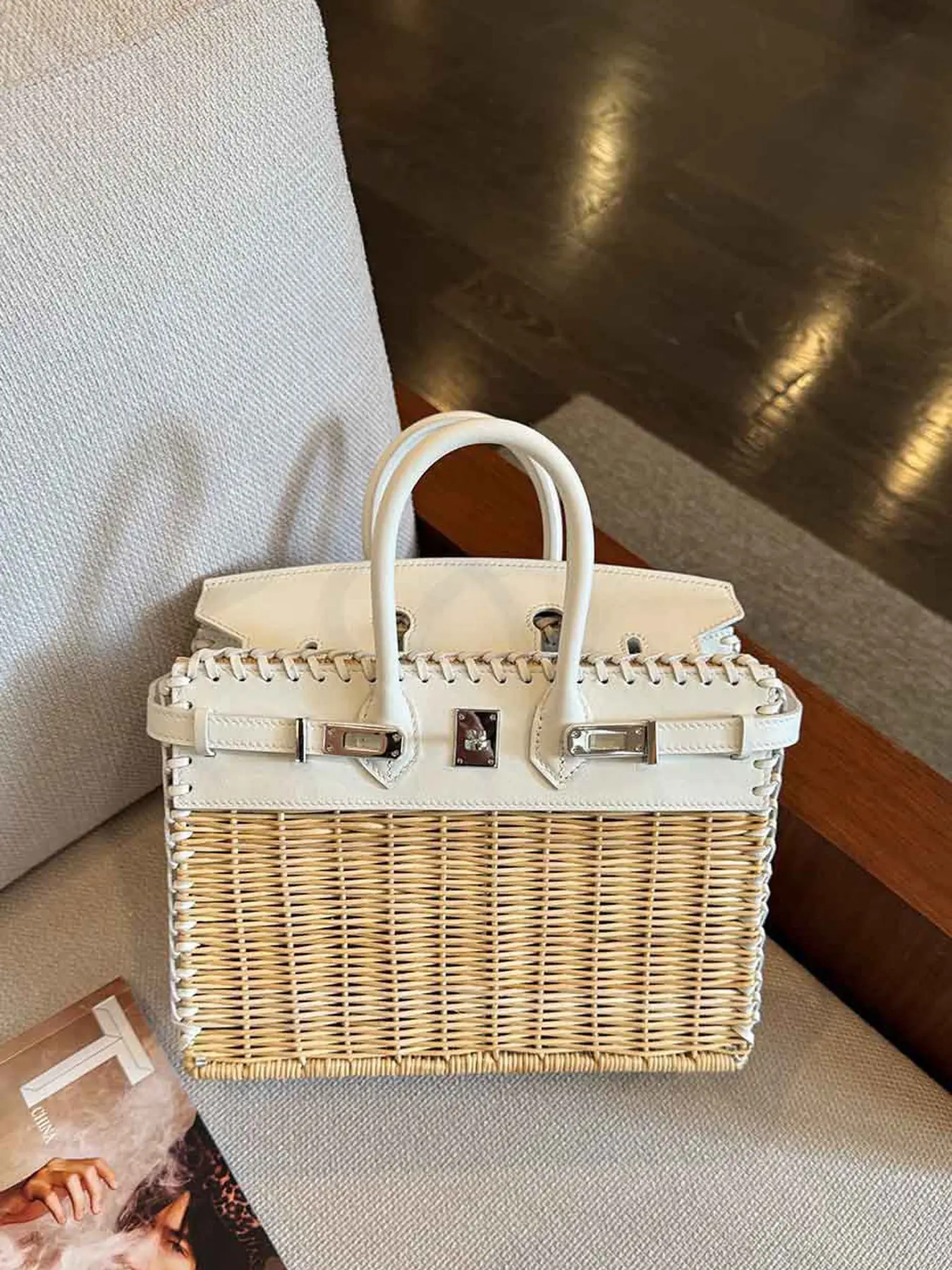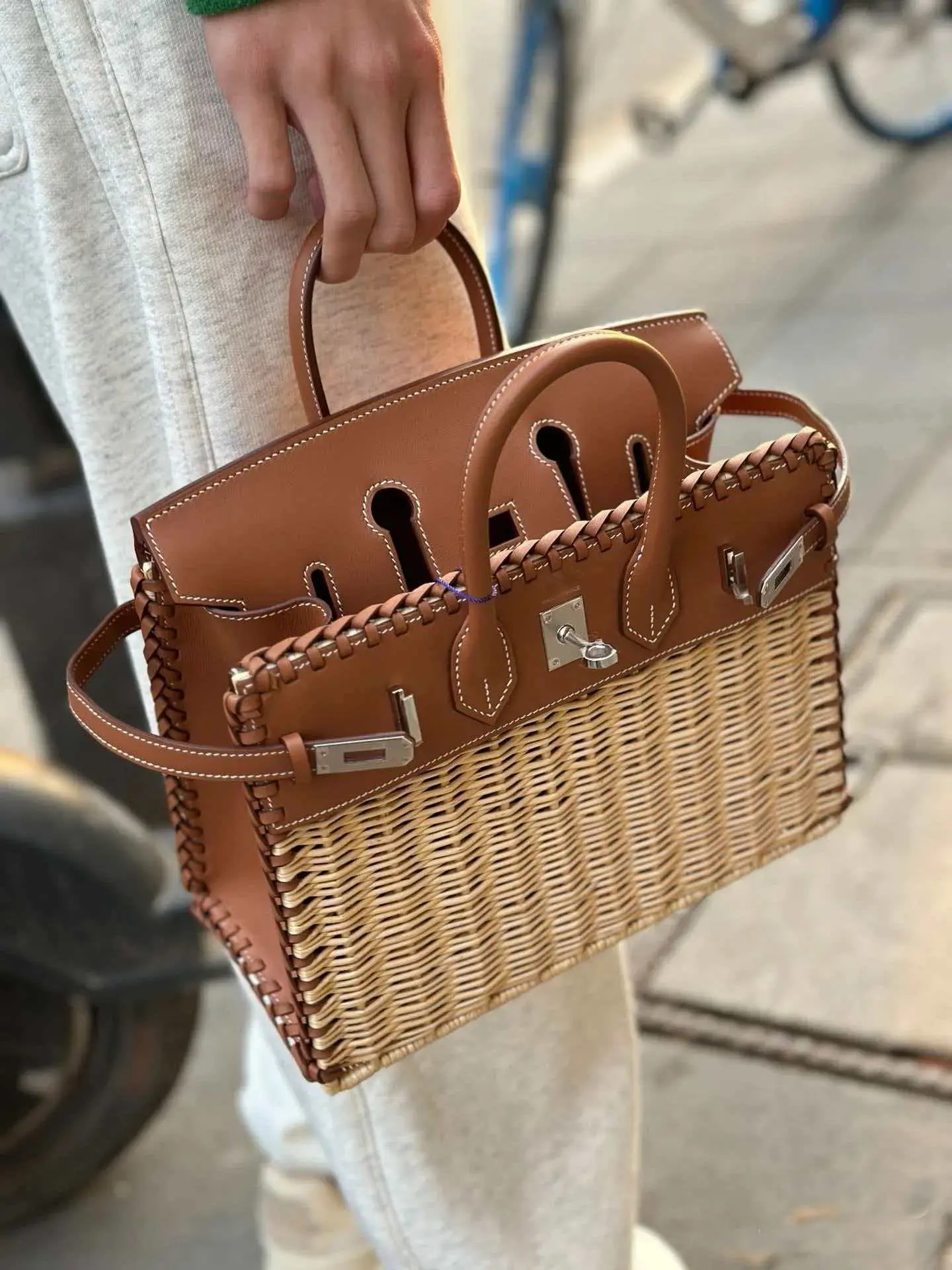 2026 Fashion Handbag, High-Quality Handmade Basket Bag, Picnic Lunch Bag, Platinum Color Bag for Girlfriend, Mother's Gift, Natural Rattan Crossbody Bag