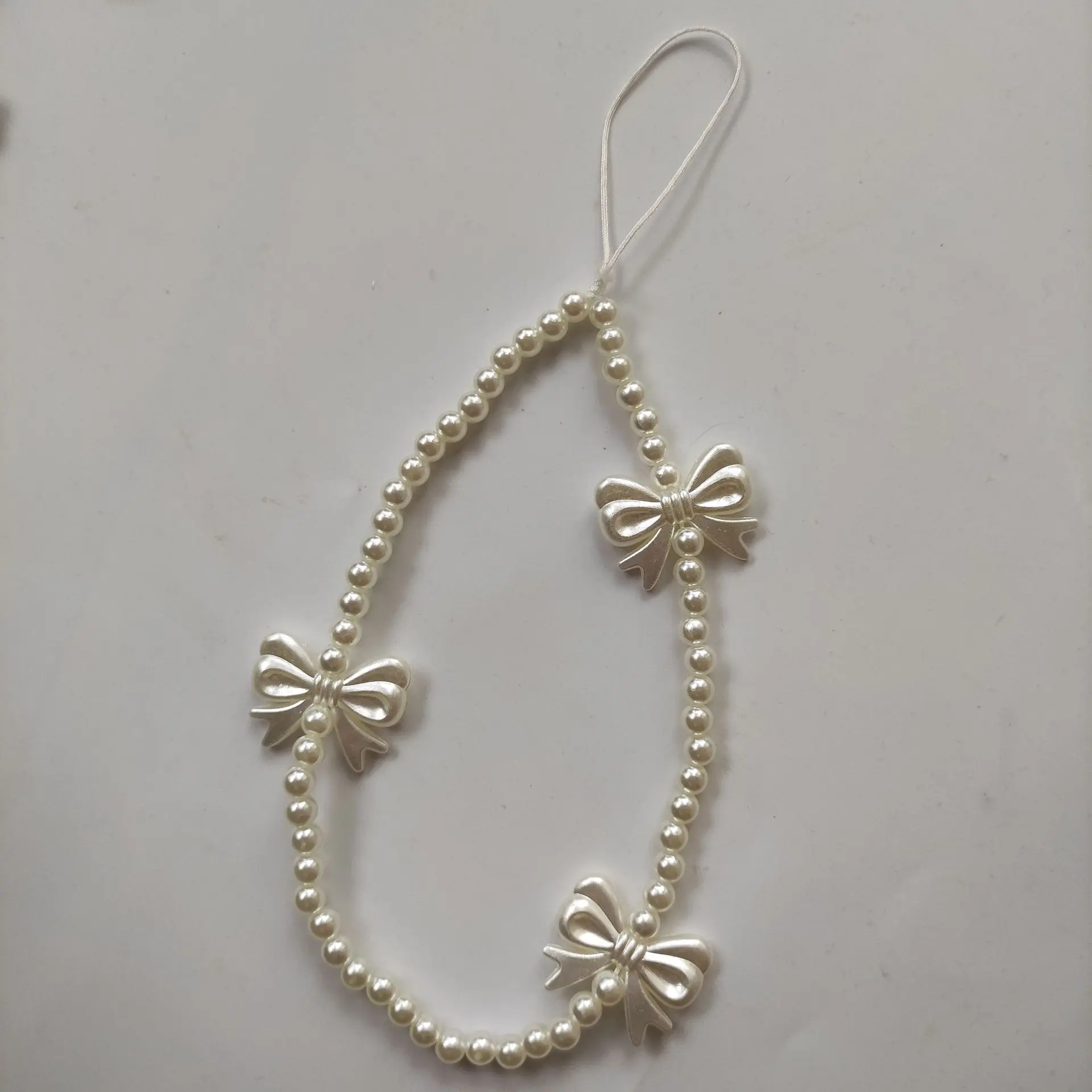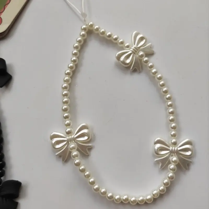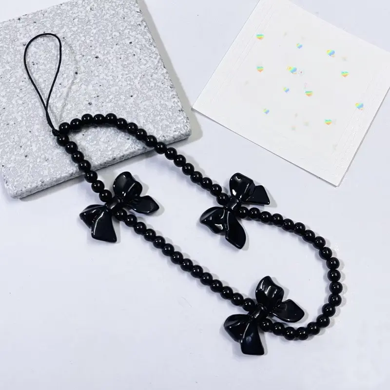 Sweet Cool Bow Beaded Phone Strap Short Fashion Bead Phone Chain Anti-Drop Prevent Falling, Stylish Mobile Accessory