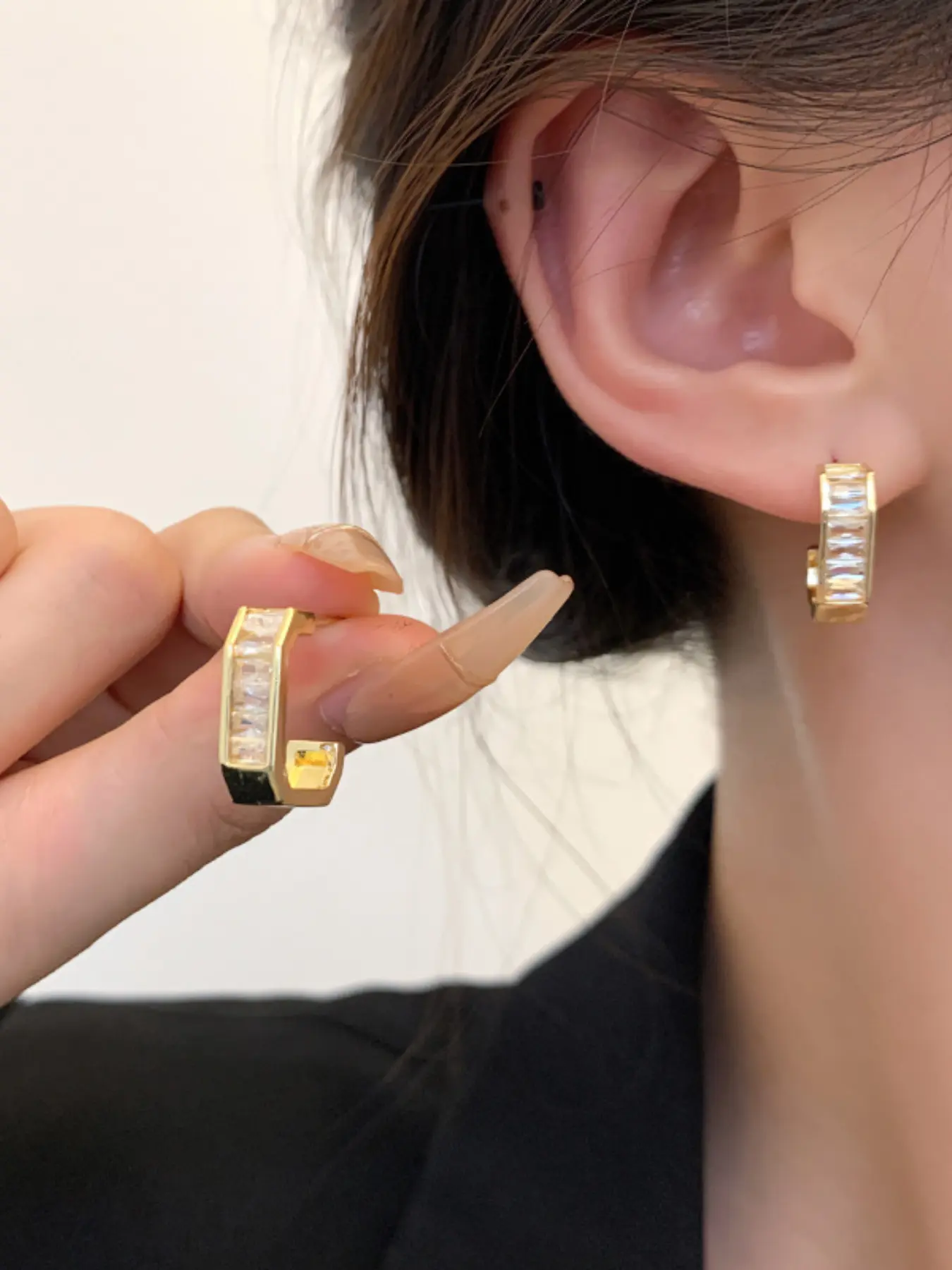 [1 Pair C-Shaped Stud Earrings] 14K Golden Plated Copper Hoop Earrings with Cubic Zirconia- Minimalist Everyday& Festival Jewelry, Year-Round Versatile Accessory, Festival Accessories, Sophisticated Style, Luxurious Finish