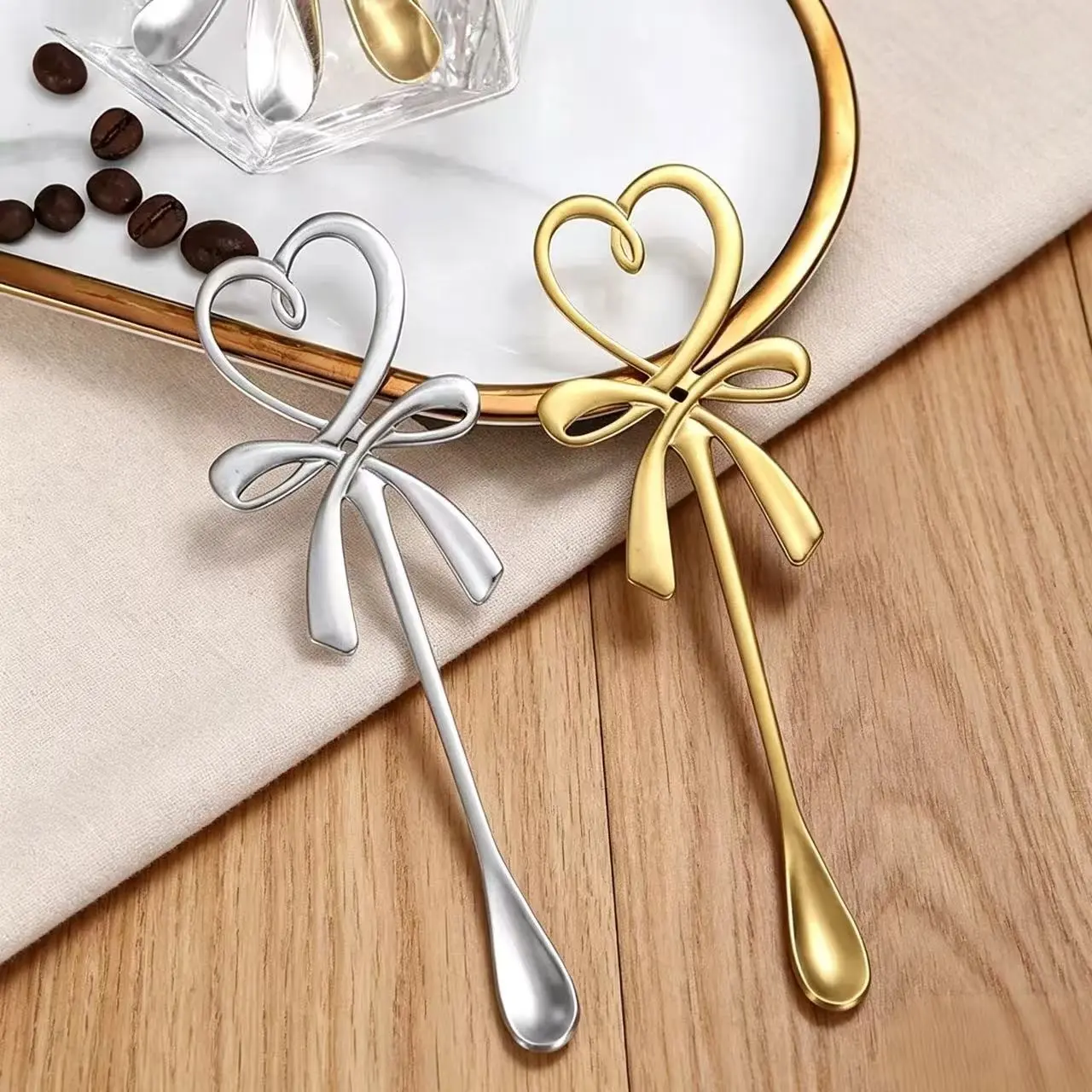 5-Piece Heart Butterfly Cup Spoon Set, Stainless Steel Coffee Stirrer, Sweet Dessert Spoon, Silver Color Dinner Spoon for Parties