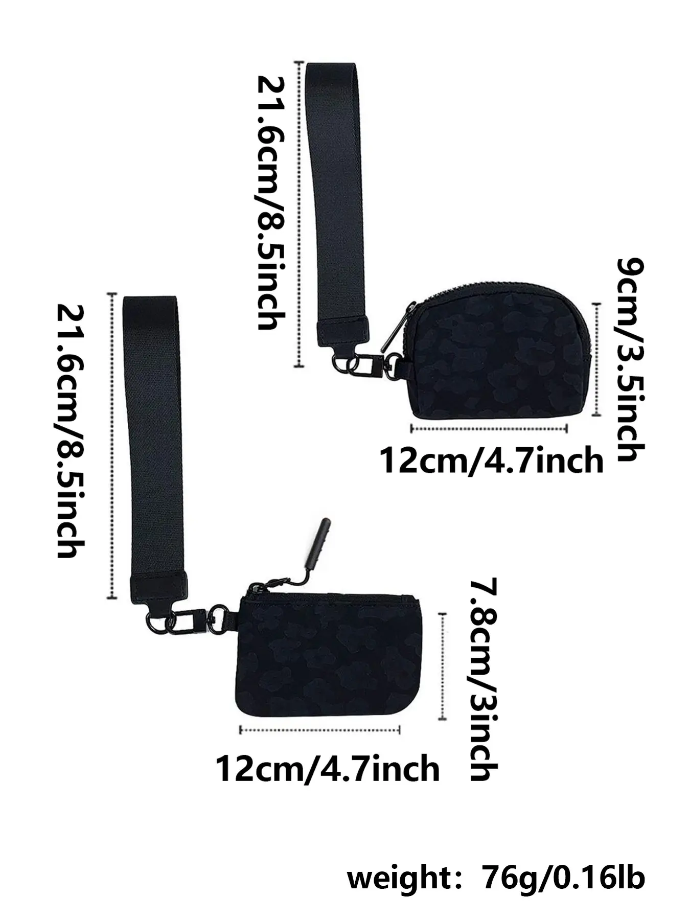 Women's Mini Zipper Wristlet Wallet, Sporty Nylon Material, All-Season Use, Dual Pocket Design, Portable Key Chain Coin Pouch