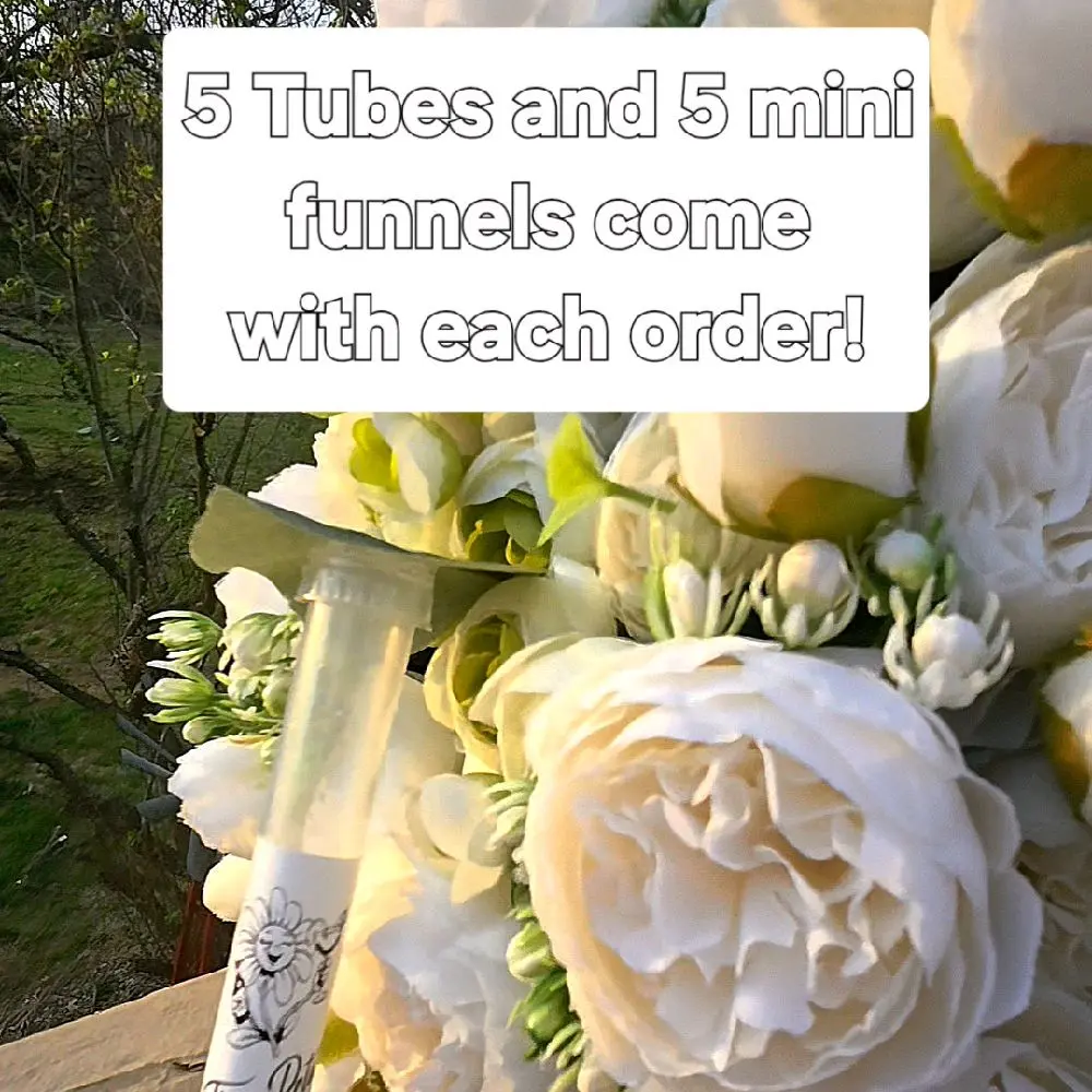 Each tube comes with a discreet petal on top and a sealed plastic lid making it spill proof. Fill the tube with whatever "spirits" move you and tuck her right into your pocket or bouquet and no one will ever know.