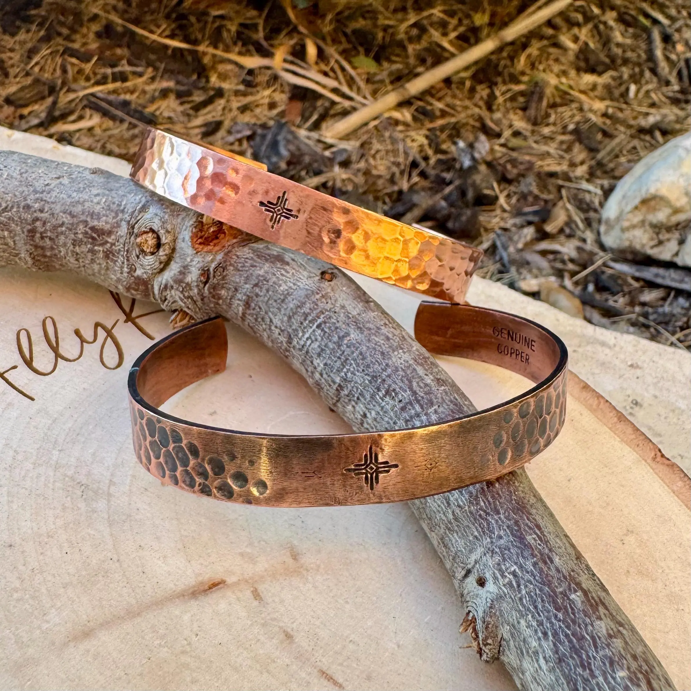 Crafted from solid copper, the bracelet features a light seal that helps preserve its natural beauty while resisting tarnish, corrosion, and green discoloration. For those who prefer raw copper to fully embrace its traditional healing properties, unsealed options are available upon request.