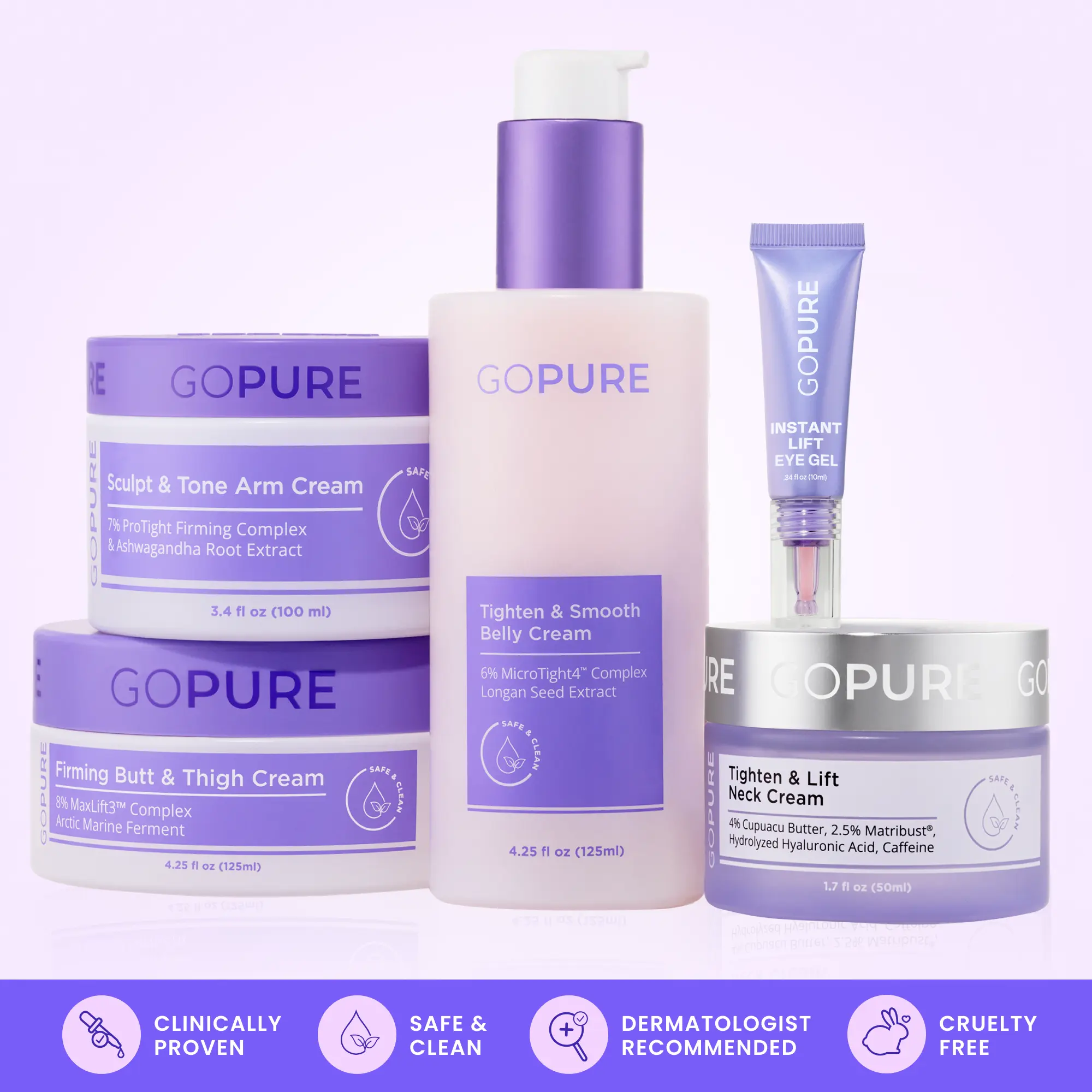 GOPURE Eye Gel + Body Confidence Set (Neck Cream, Belly Cream, Arm Cream, Bu tt & Thigh Cream)