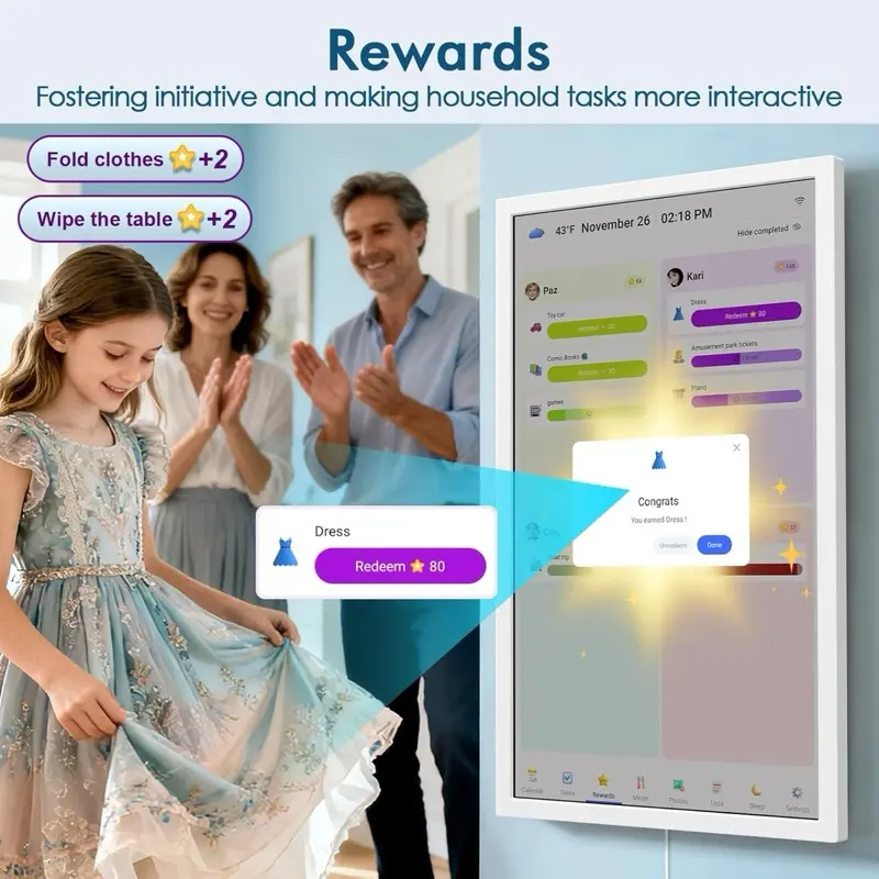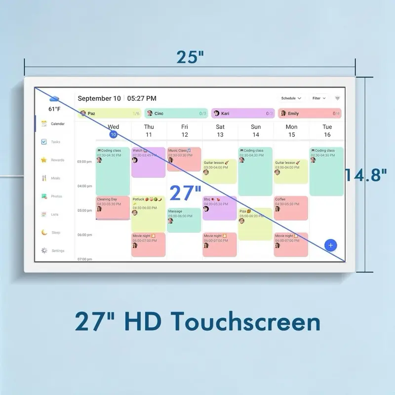 27 Inch Smart Digital Calendar Max, Wall Mountable Electronic Family Planner with Touchscreen, 1920 * 1080 IPS Display for Home & Office, Chore Chart & Event Sync White Gifts for Women and men