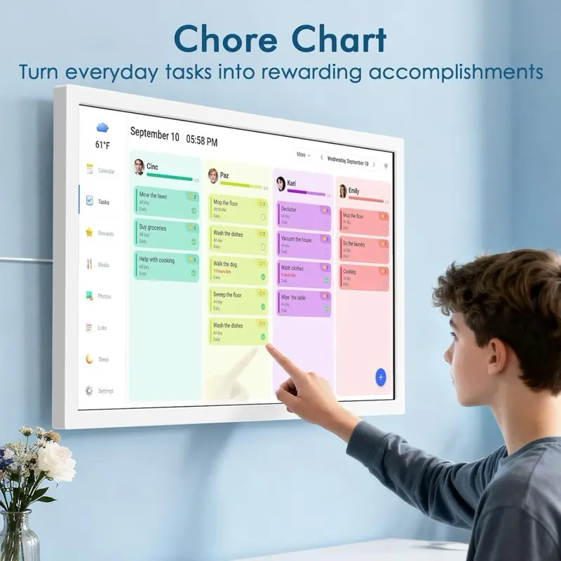 27 Inch Smart Digital Calendar Max Wall Mountable Electronic Family Planner with Touchscreen 1920x1080 IPS Display for Home Office Chore Chart Event Sync White Gifts for Women and Men