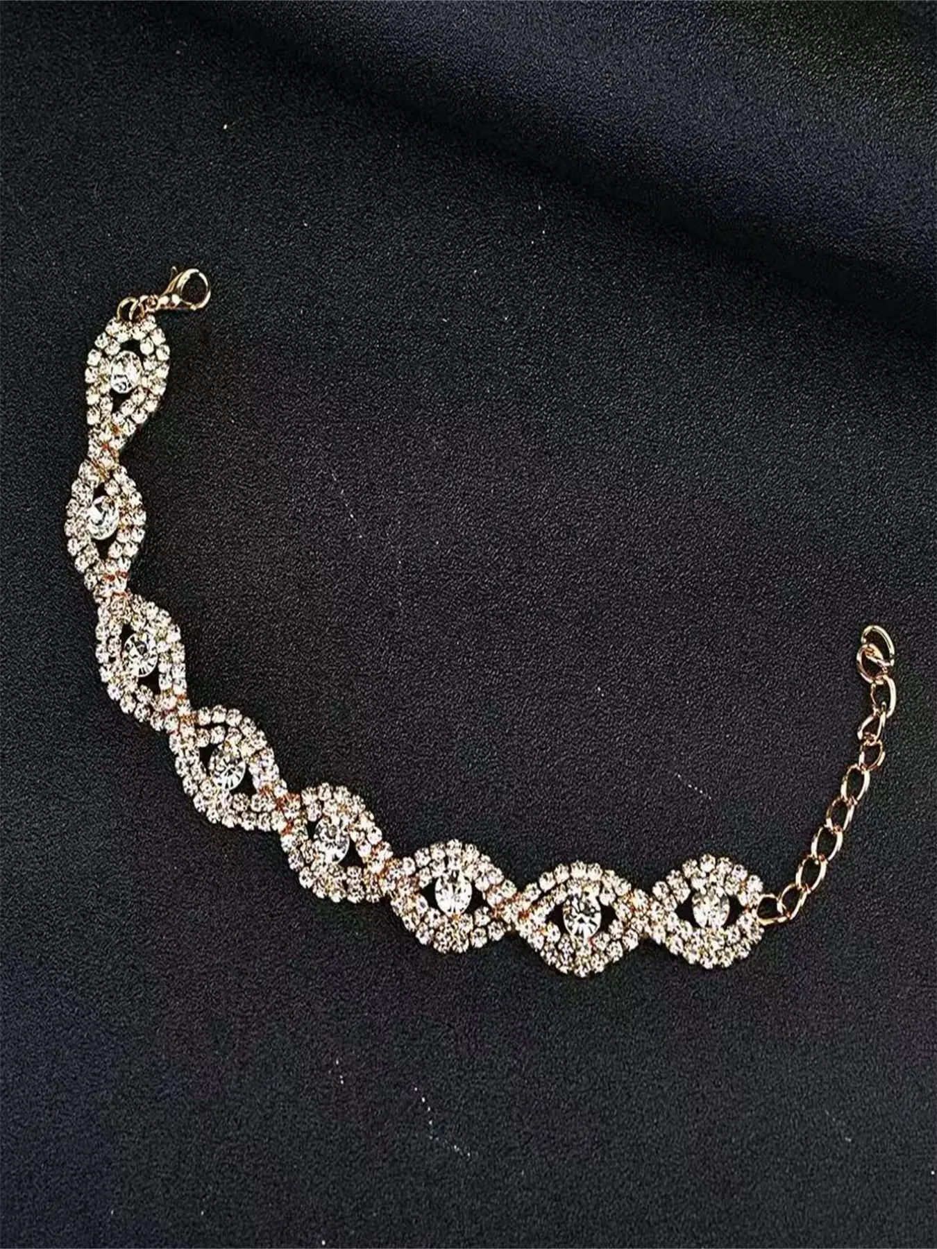 Elegant European Style Wedding Dress Hollow Out Full Rhinestone Bracelet for Women, Bridal Accessory, Perfect for Special Occasions
