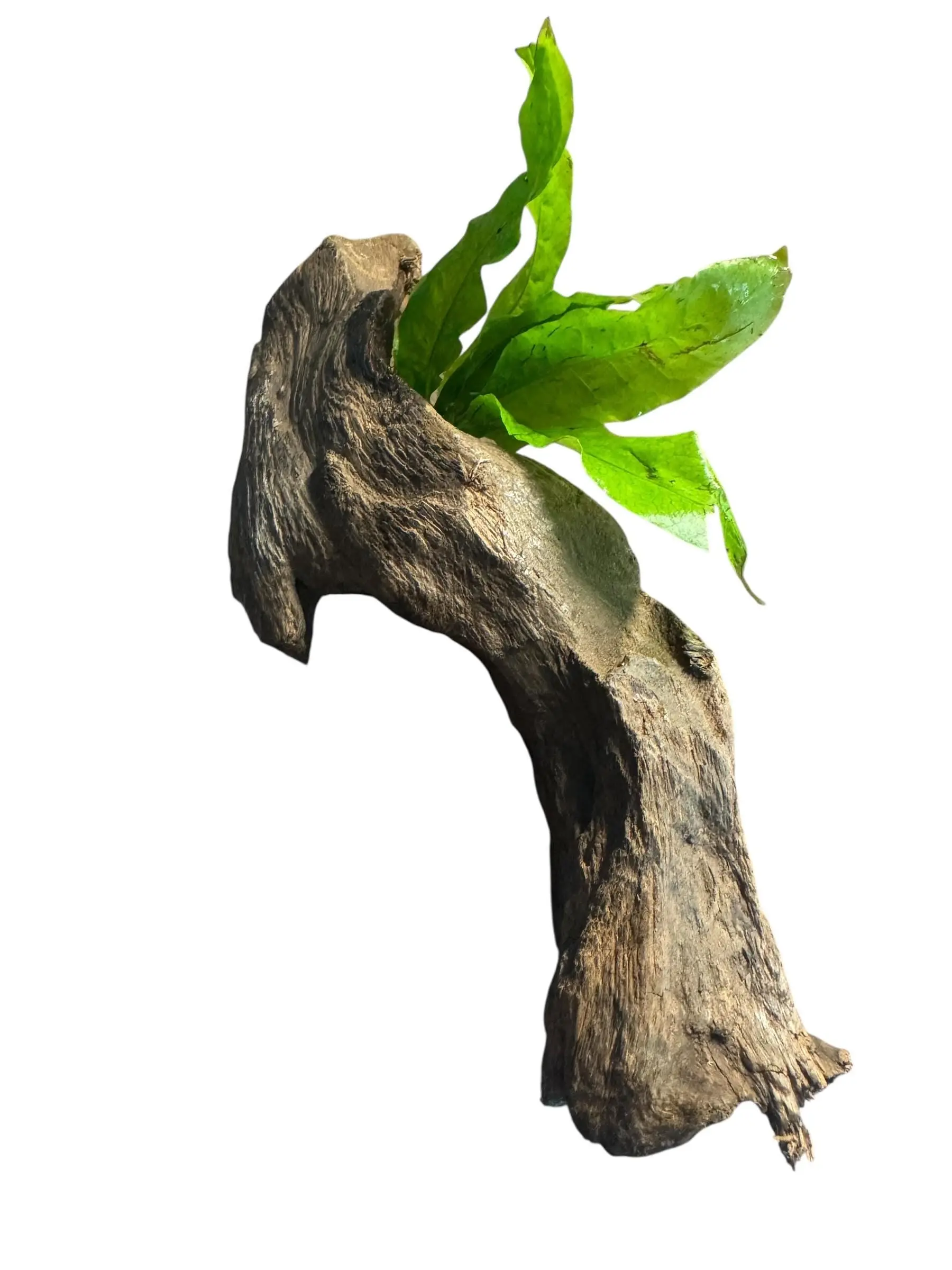 Plants are carefully packed to ensure safe arrival. Driftwood may be damp during shipping to protect the plant.
