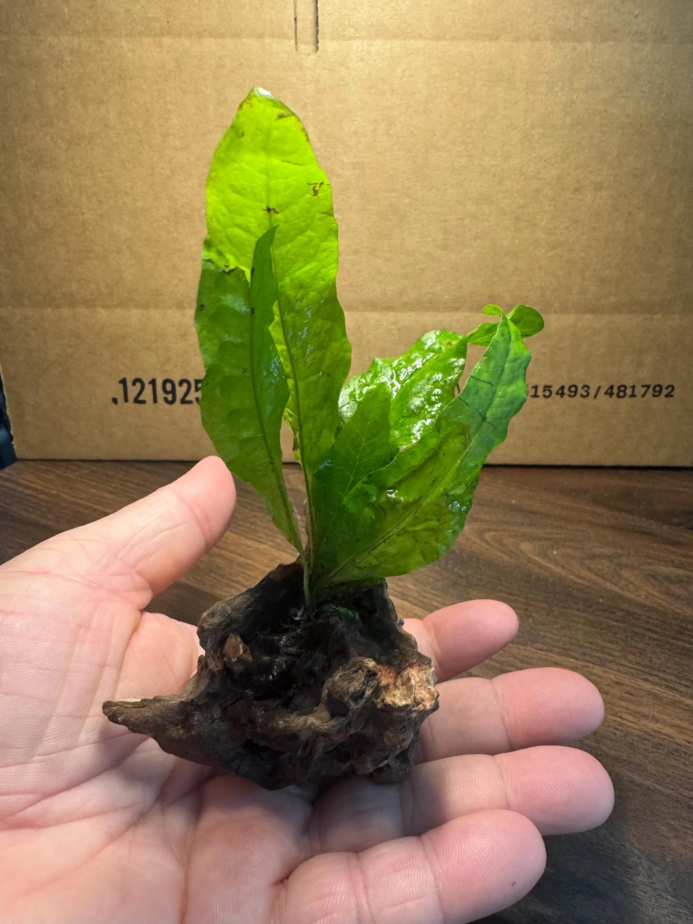 Plants are carefully packed to ensure safe arrival. Driftwood may be damp during shipping to protect the plant.