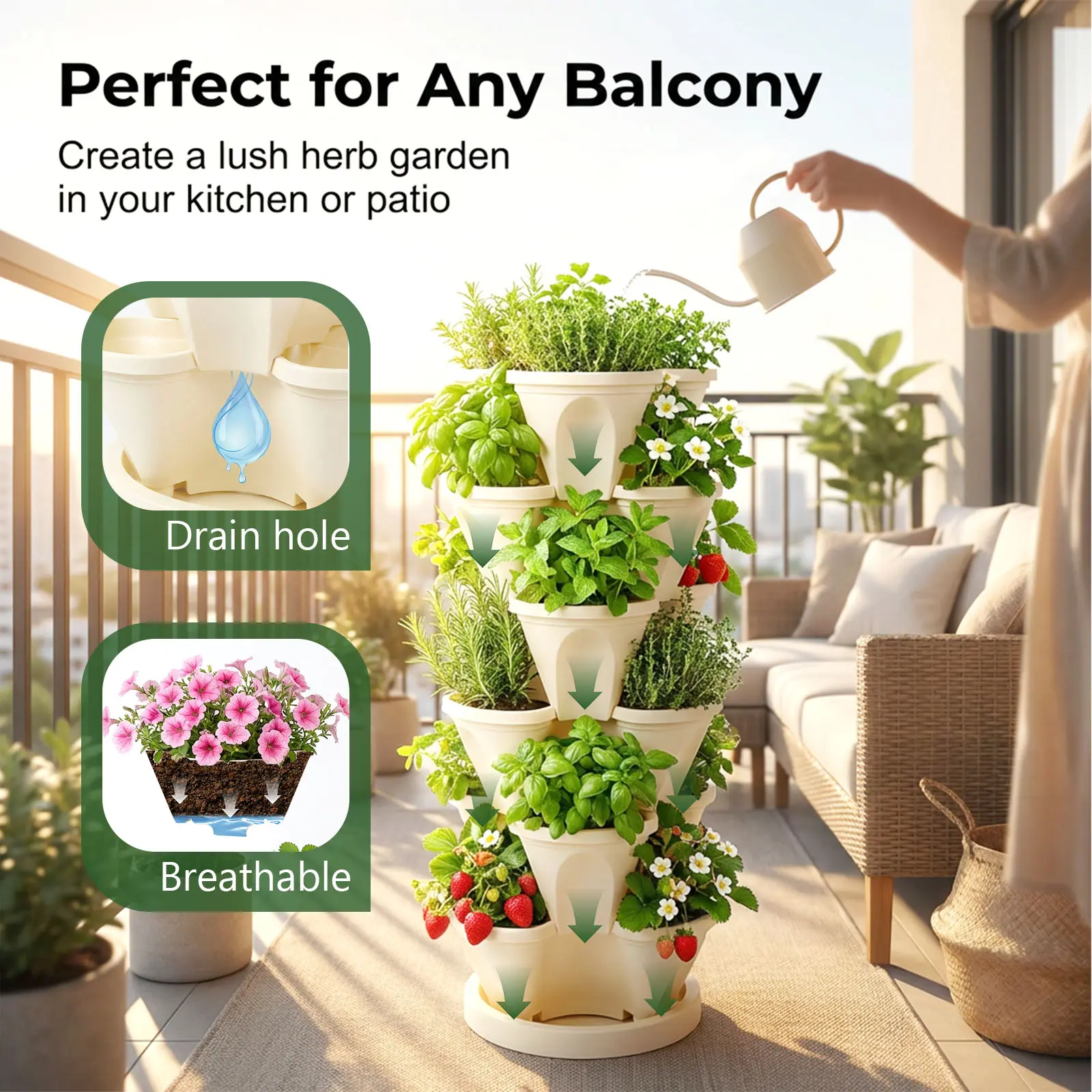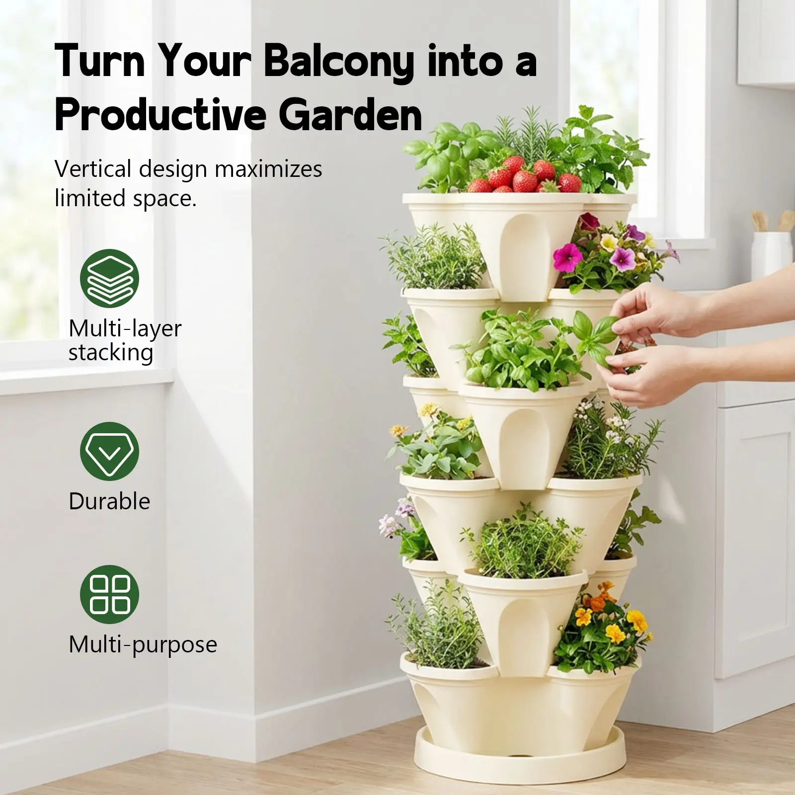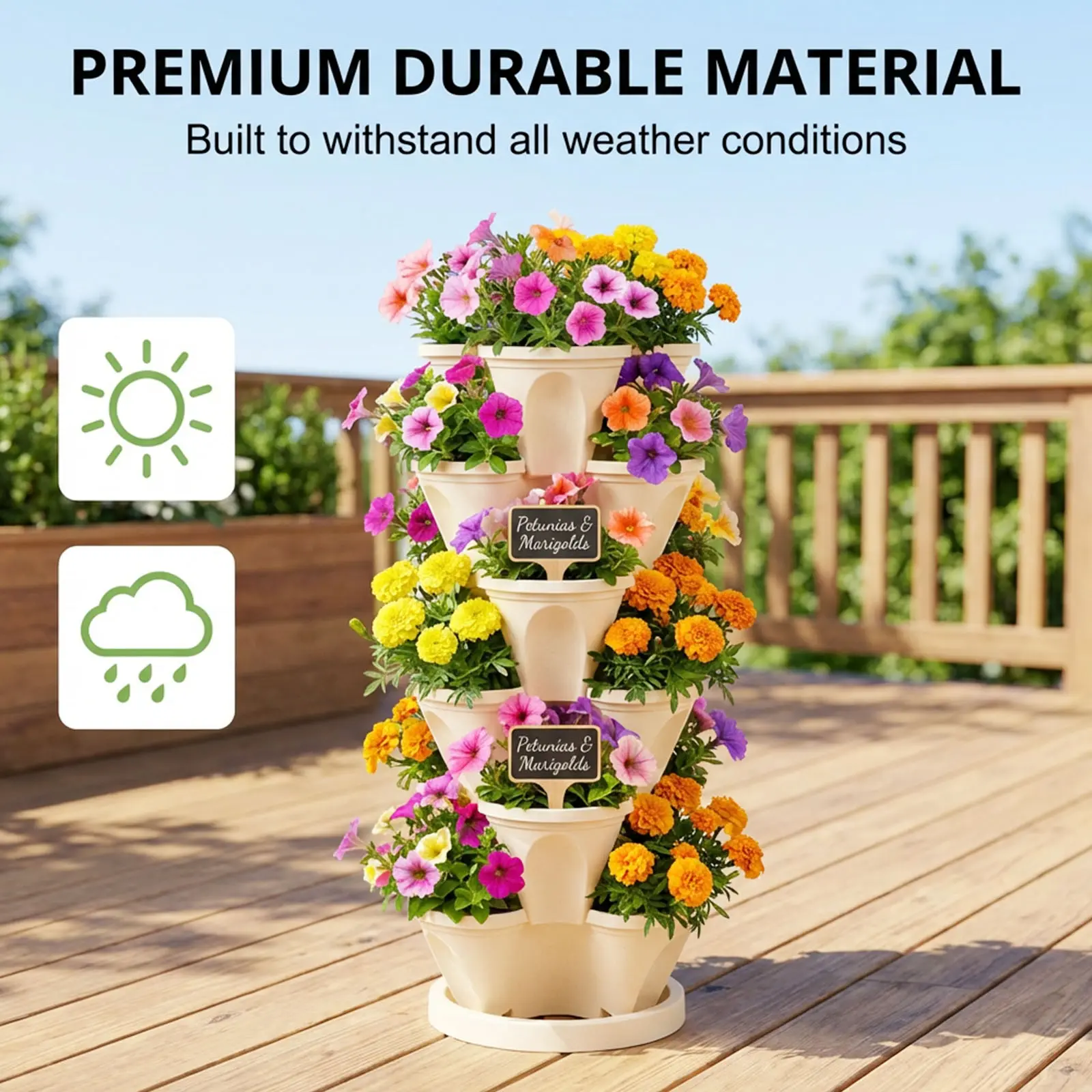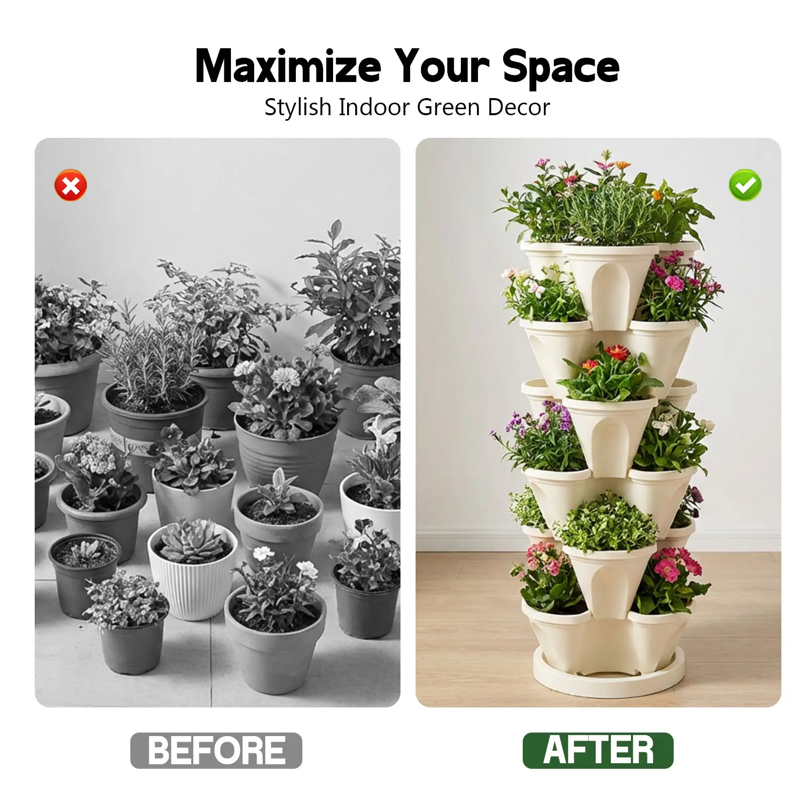 Stack these pots vertically to maximize space. They are perfect for small gardens or balconies. The petal shape design adds an aesthetic appeal to your garden. Enjoy a lush, organized garden with these planter pots.