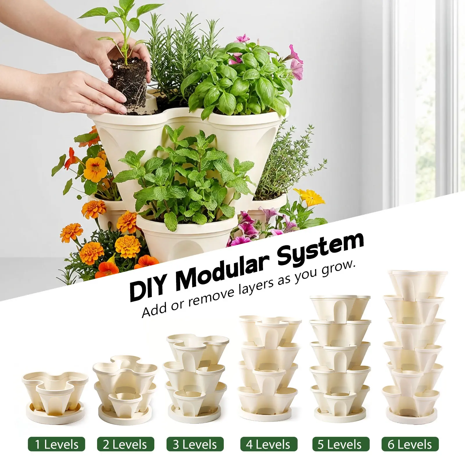 Transform your garden space with these innovative 6-layer petal shape stackable planter pots. Perfect for flowers, succulents, herbs, strawberries, and vegetables, these pots offer versatile planting options. Ideal for both indoor and outdoor use, they enhance any garden setup.