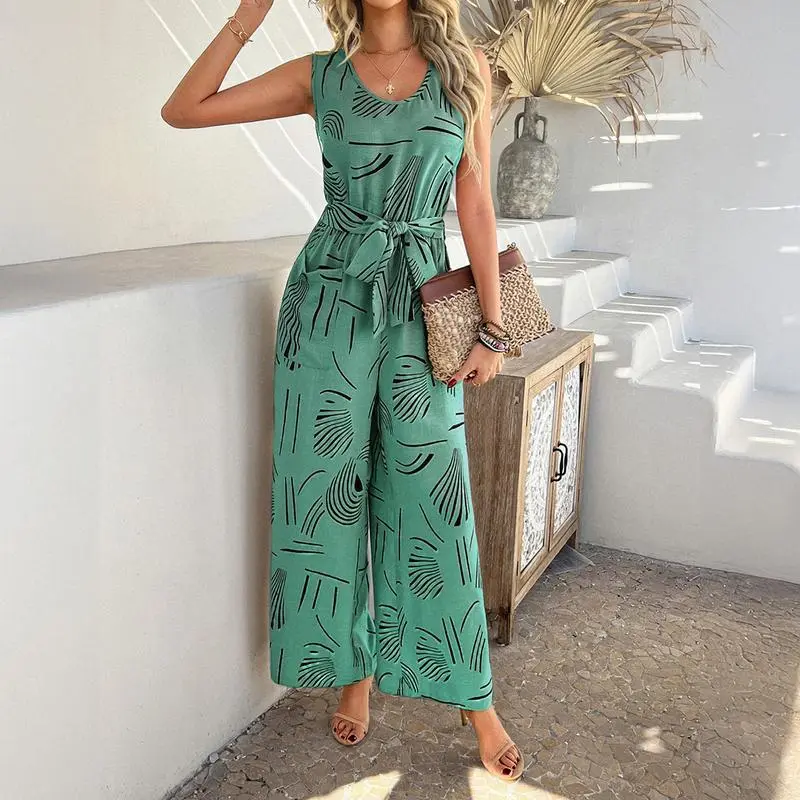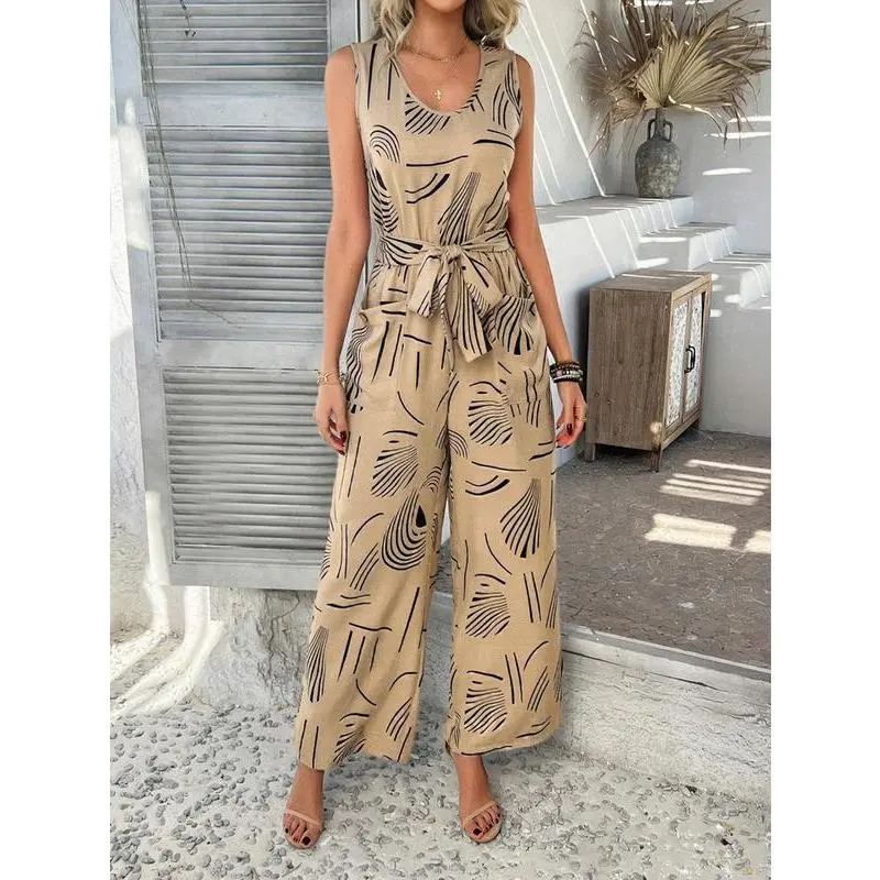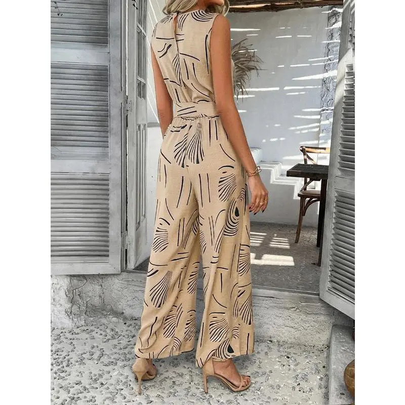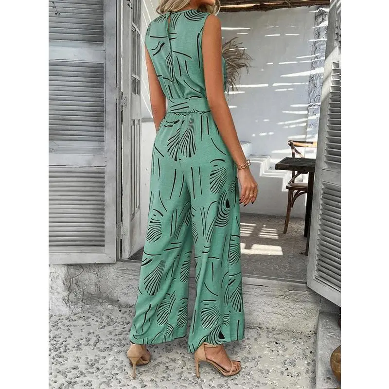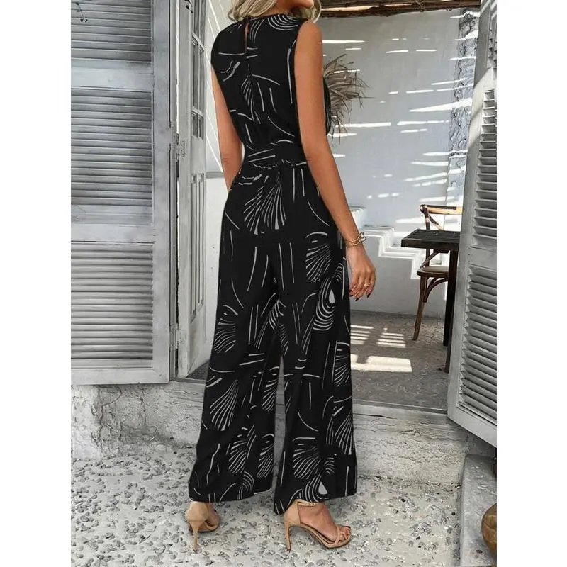 Women's V-neck sleeveless jumpsuit summer waistband high waisted wide leg jumpsuit, summer jumpsuit two-piece s-XL set, workwear set women's, casual wear s-XLRAIMENTRY