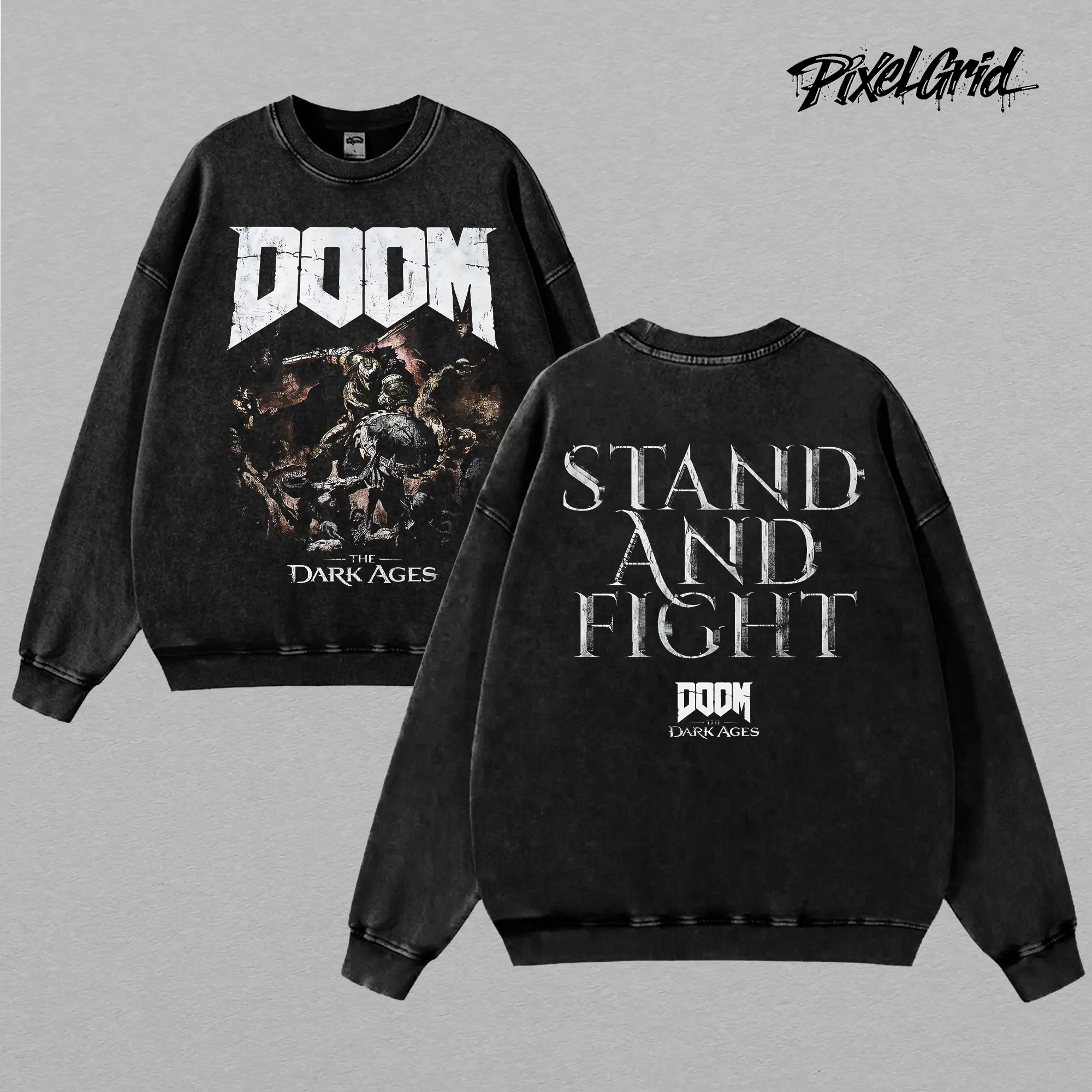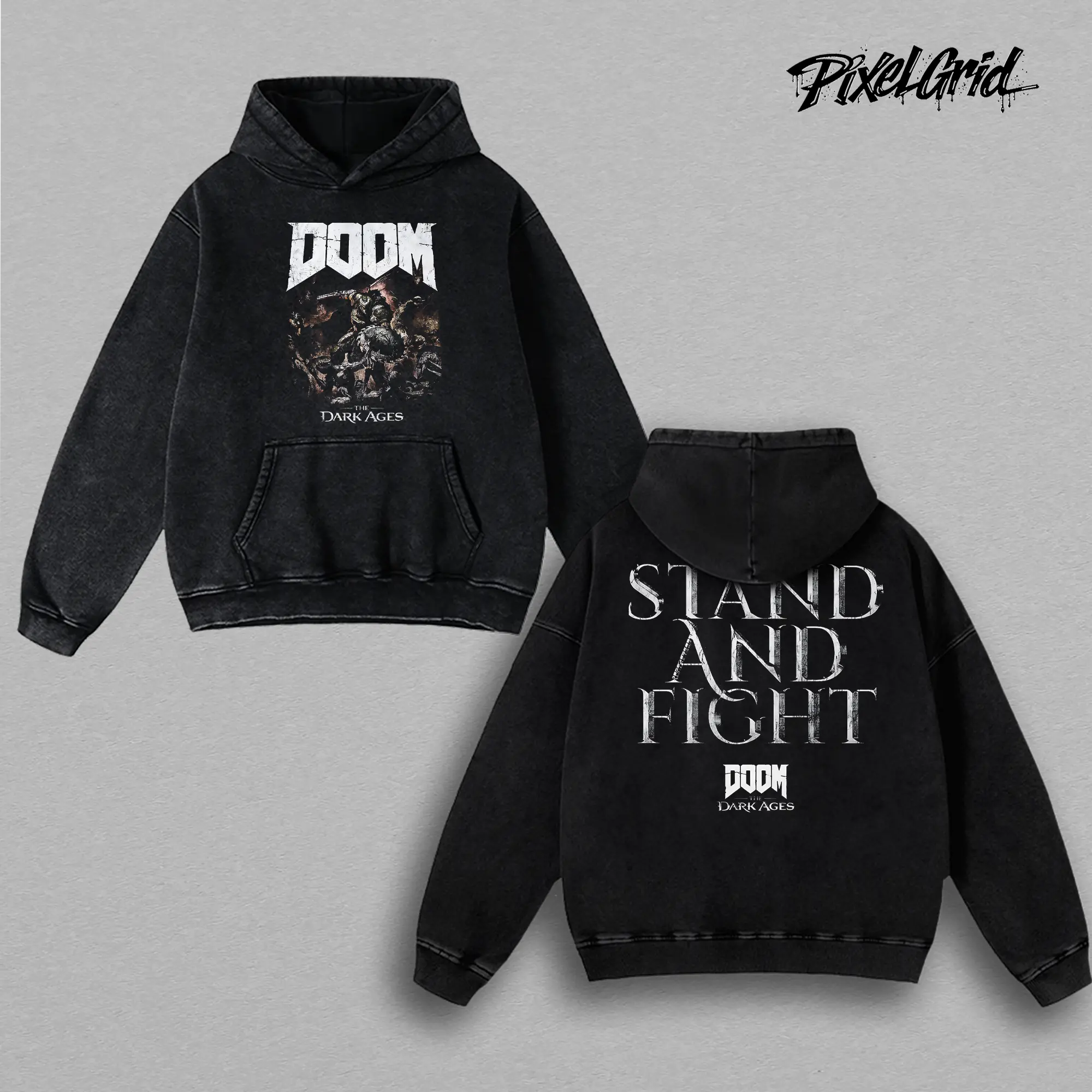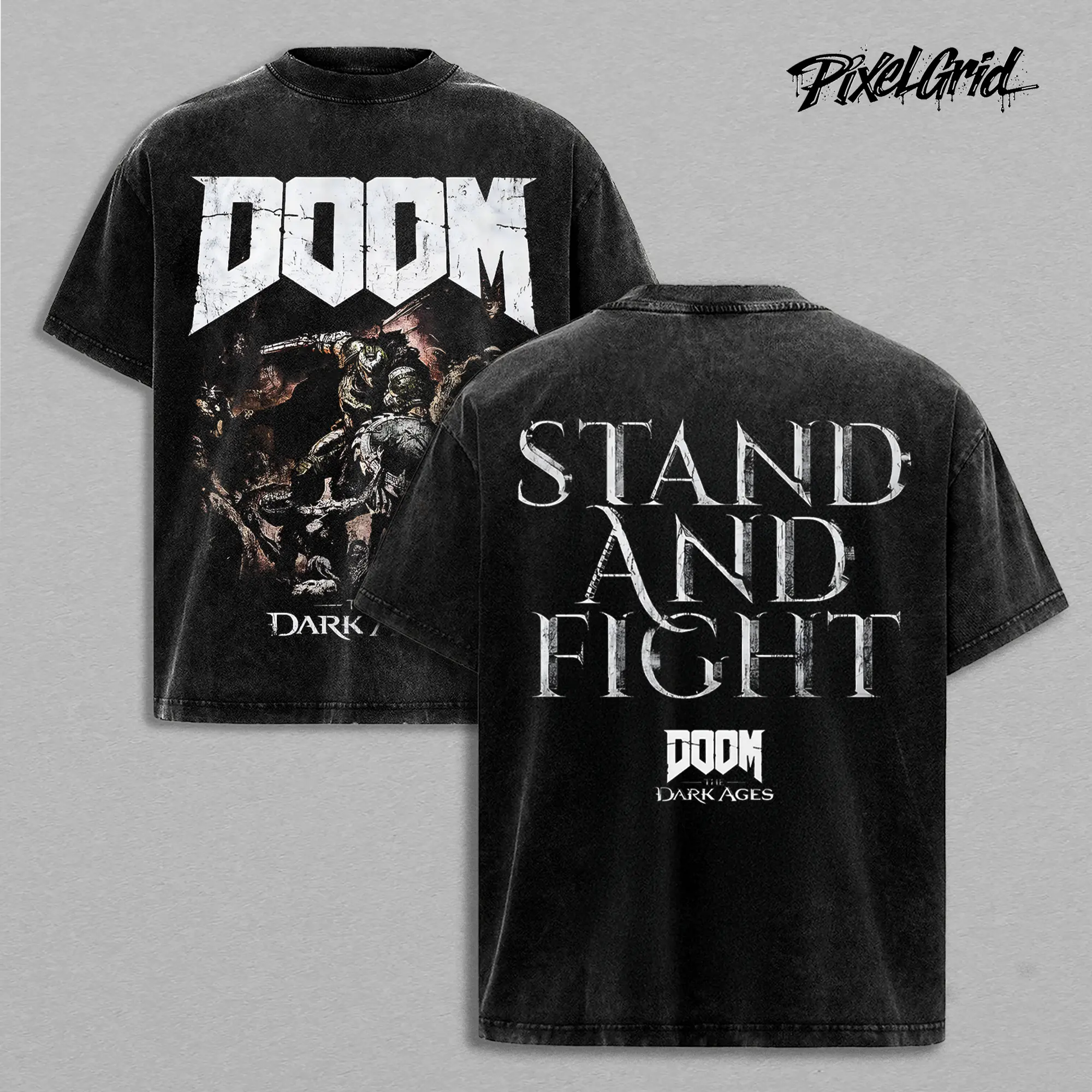 DOOM Dark Ages Stand And Fight Graphic Tees, Retro FPS Demon Slayer Game Shirt, Vintage Washed Oversized Heavy Cotton T-Shirt, Unisex Graphic Streetwear Fit, Casual Crewneck Gamer Apparel