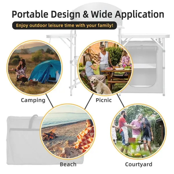 • Super Easy to Use and Operate: Including a portable carrying bag, you can put the folding table into the bag. Therefore, this folding camping table makes it possible to grill anywhere, without the need for a stationary table. It's perfect for BBQ, parties, camping, picnics, backyards and tailgating.
