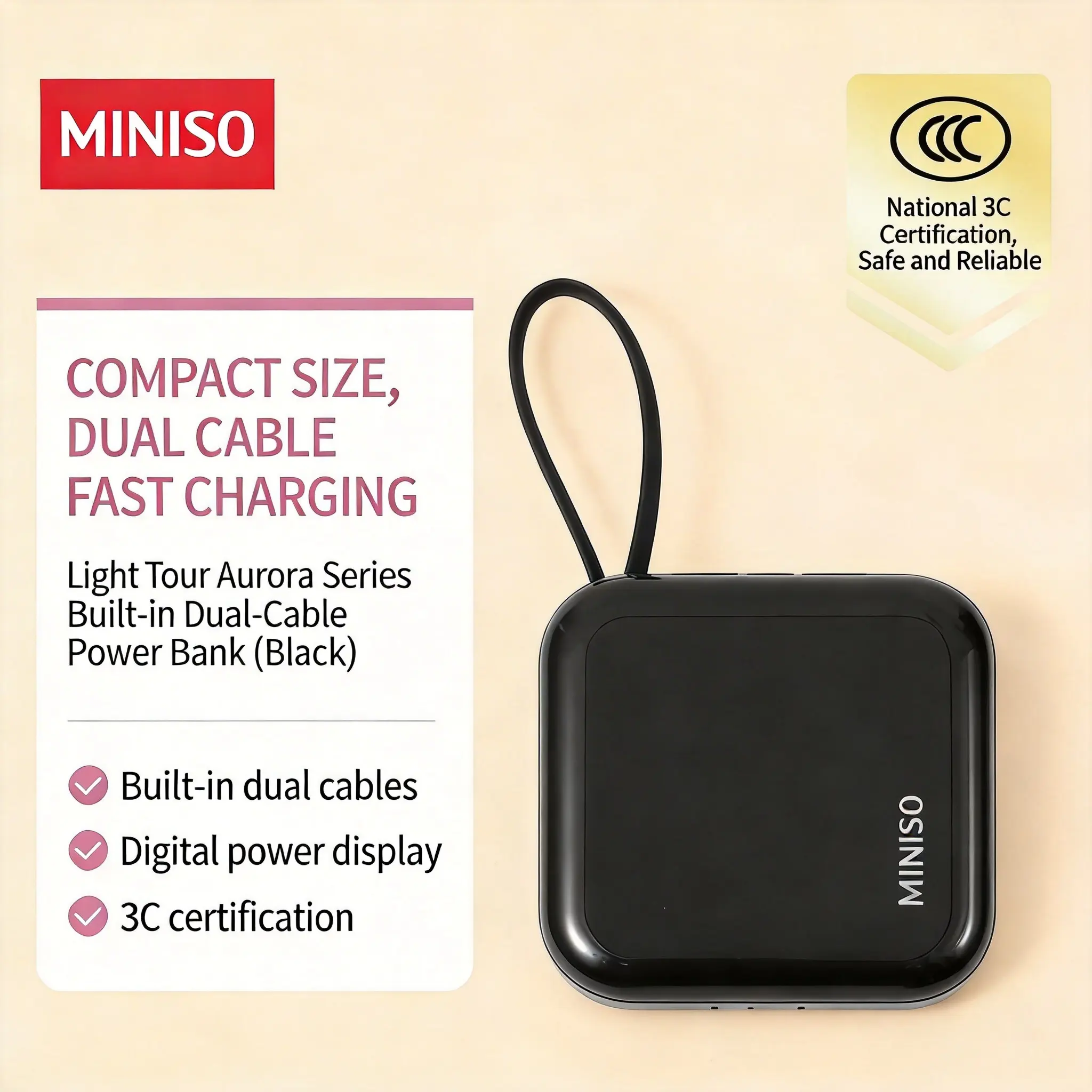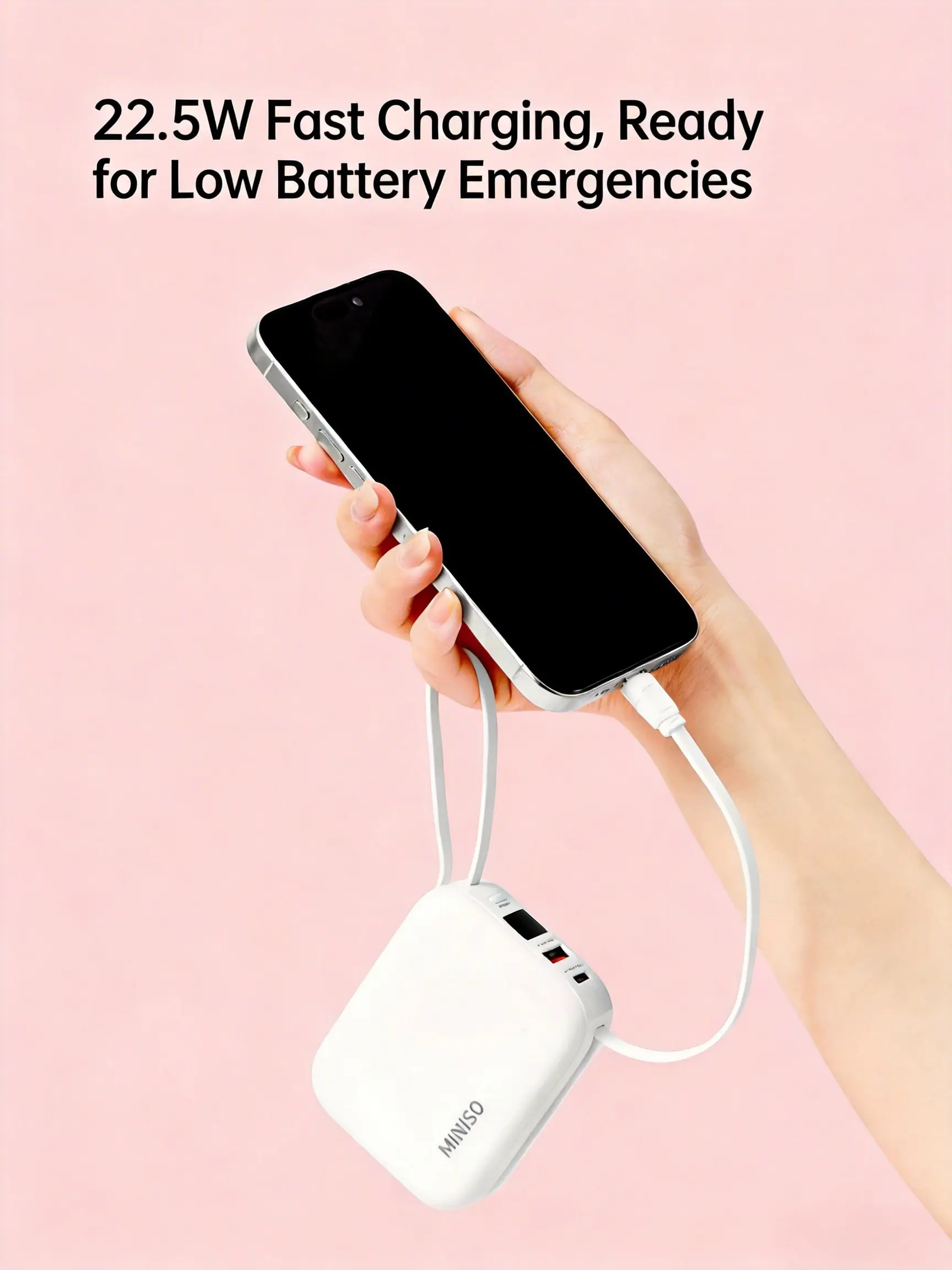 The MINISO2-in-1 Power Bank offers 10000 mAh capacity, ensuring your devices stay charged on the go. With 22.5W fast charging, it efficiently powers your gadgets. Built-in cables eliminate the need for extra accessories, making it a convenient choice. #MINISOEssentials #PortableCharger