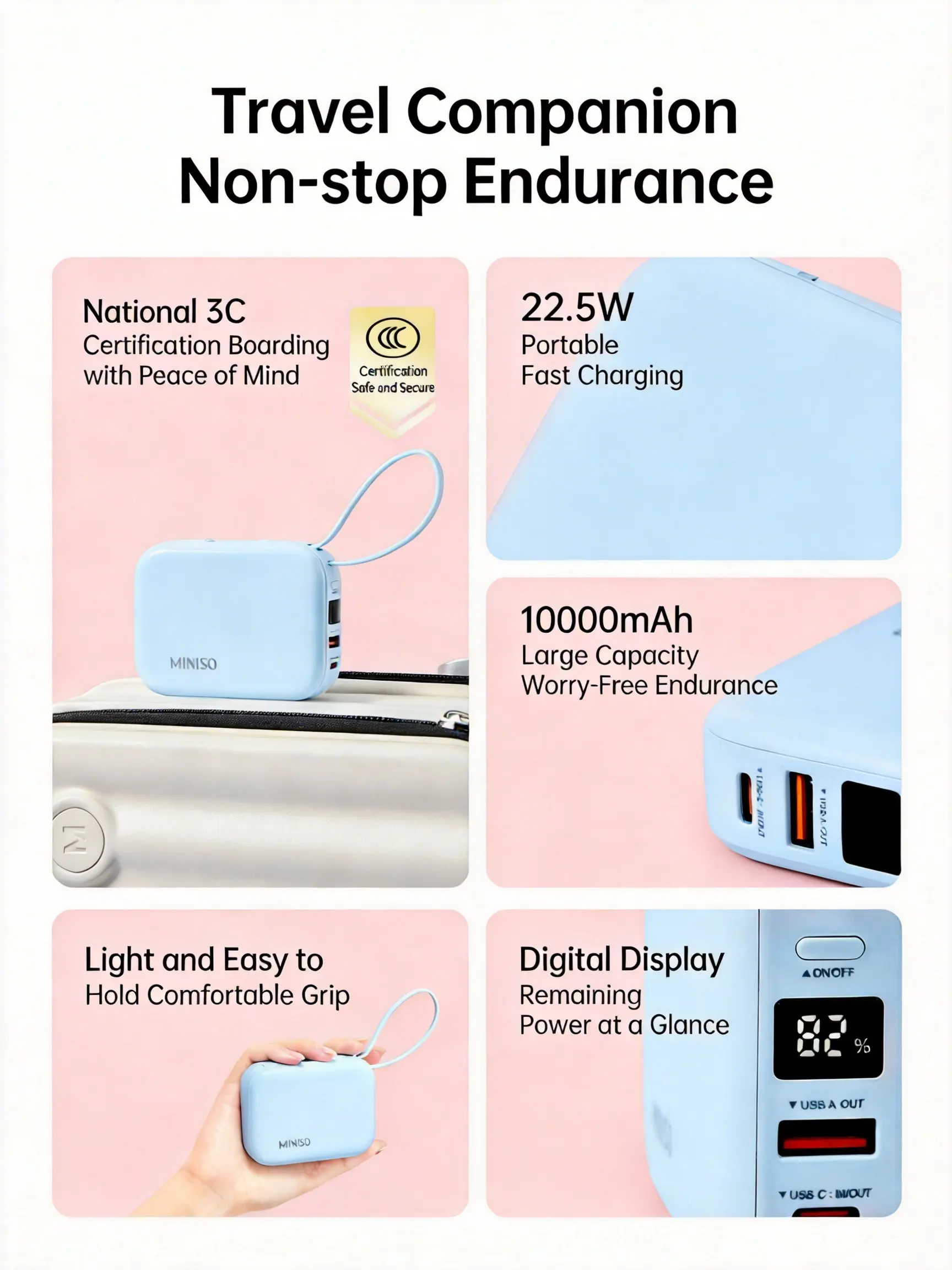 MINISO 2-in-1 Power Bank 10000mAh 22.5W Fast Charge PortableCharger High Capacity Lighter