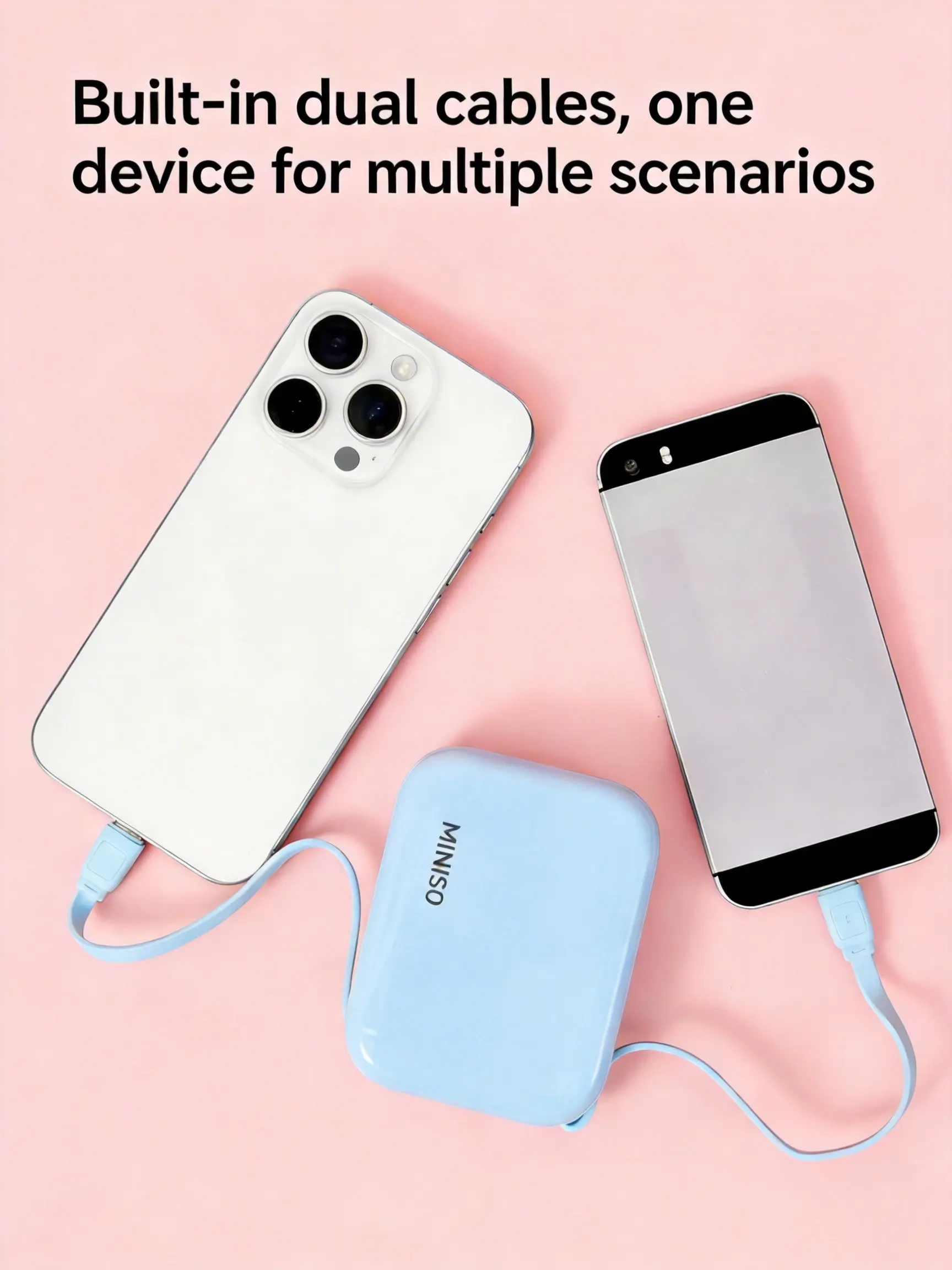 This power bank is ideal for travelers and daily use. Its compact size and built-in cables make it a must-have accessory. Stay connected without the hassle of extra cables.